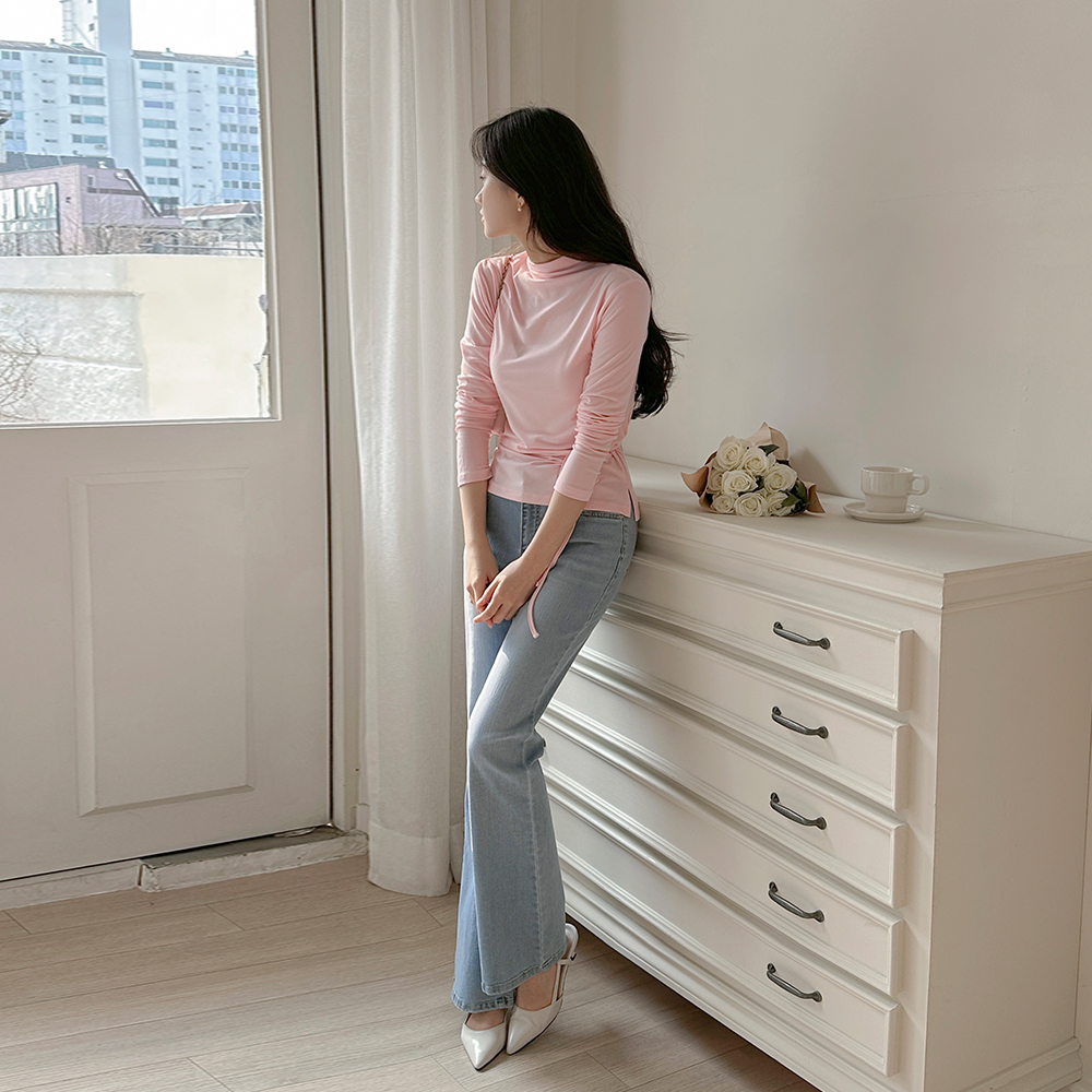 [O:neul] ピュア シルキー タッチ ベルト 半タートルネック ティーシャツ