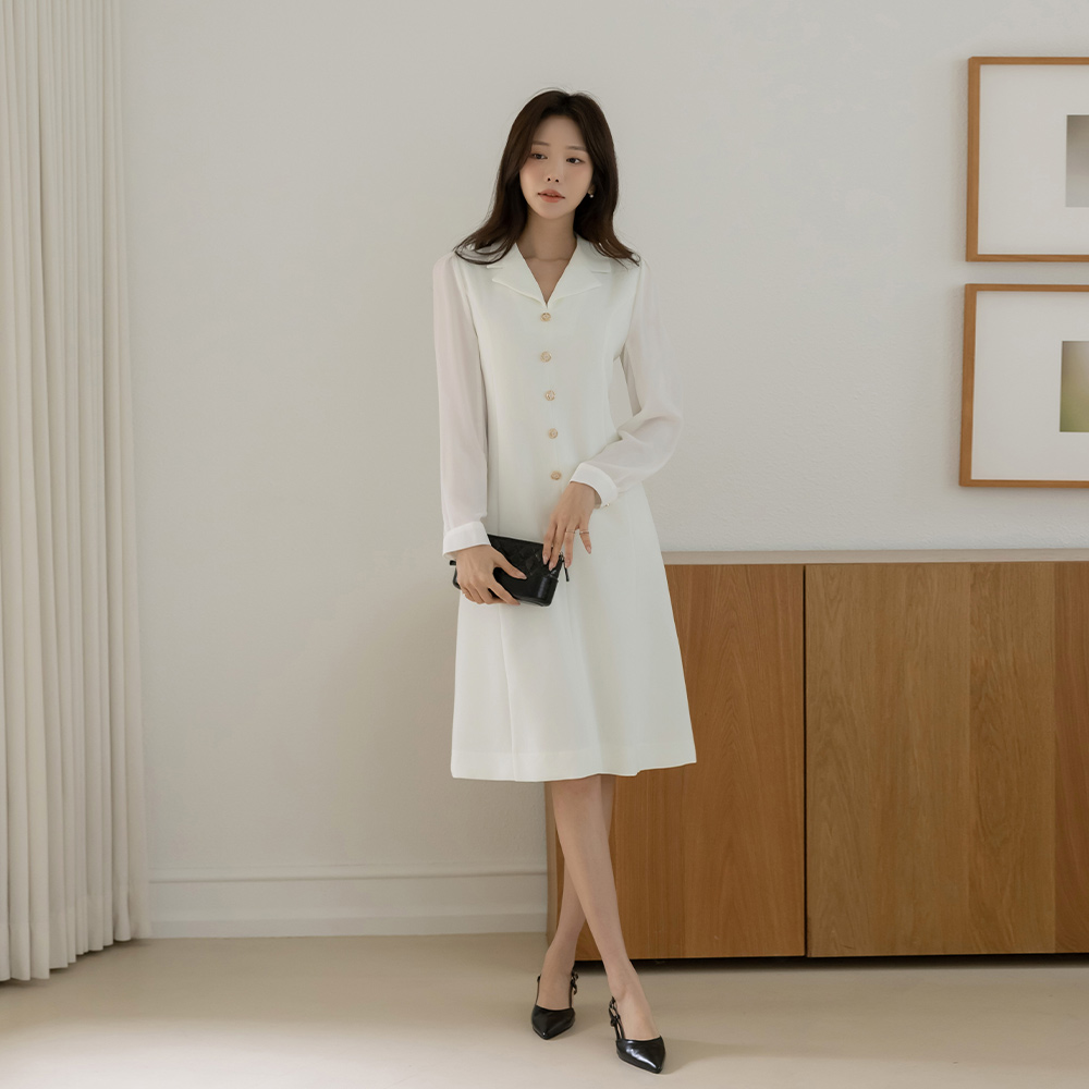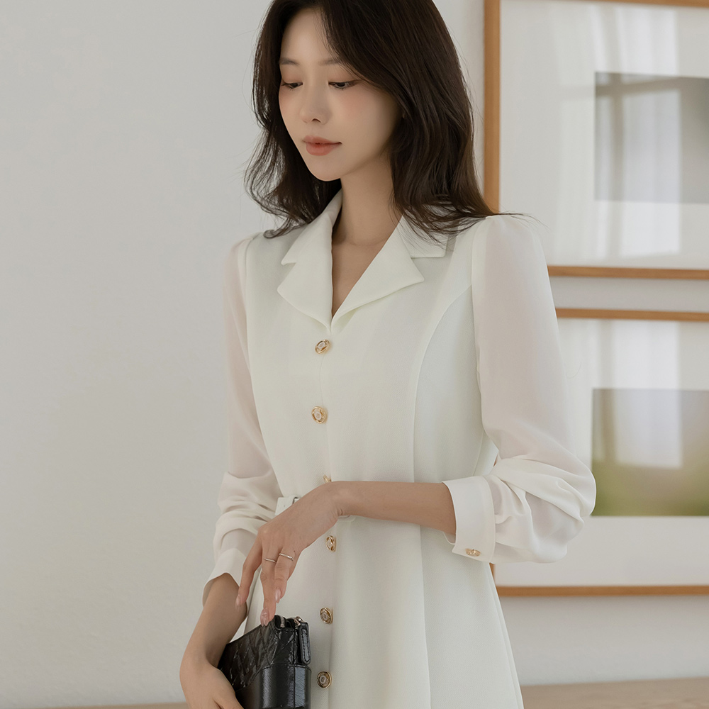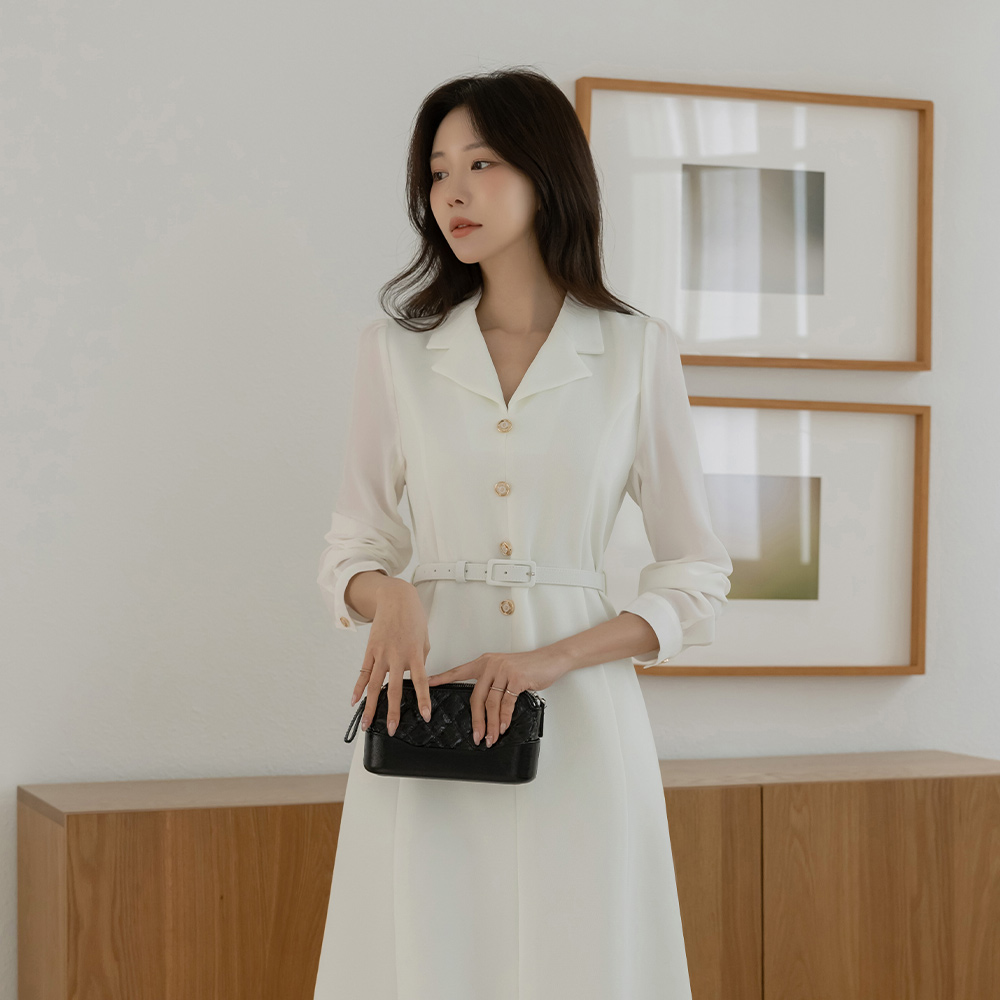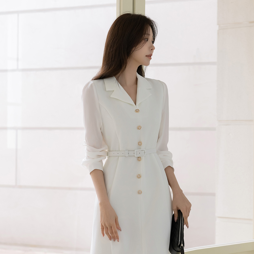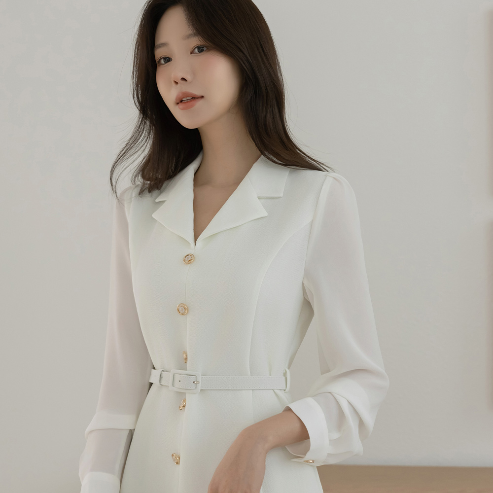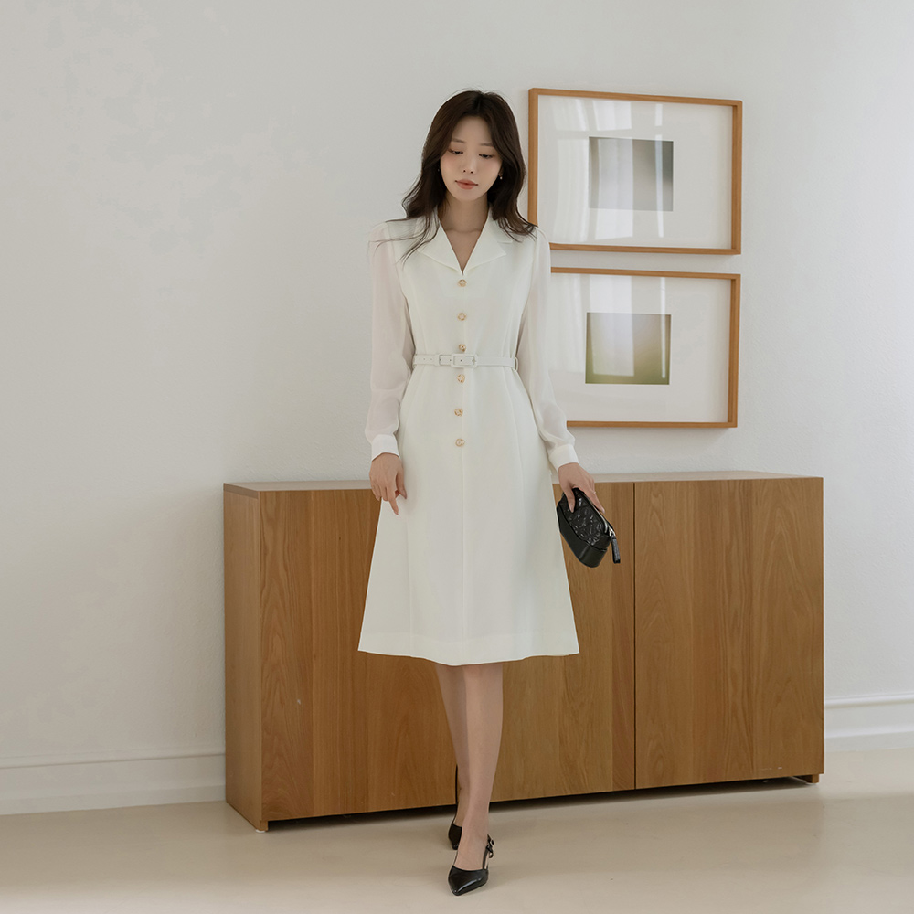 袖 シースルー 配色 Aライン ワンピース(+ベルト)