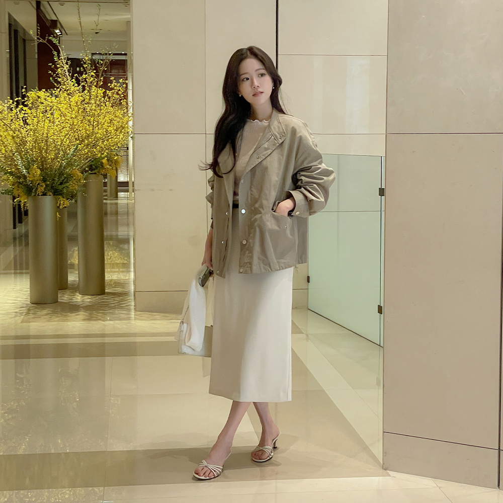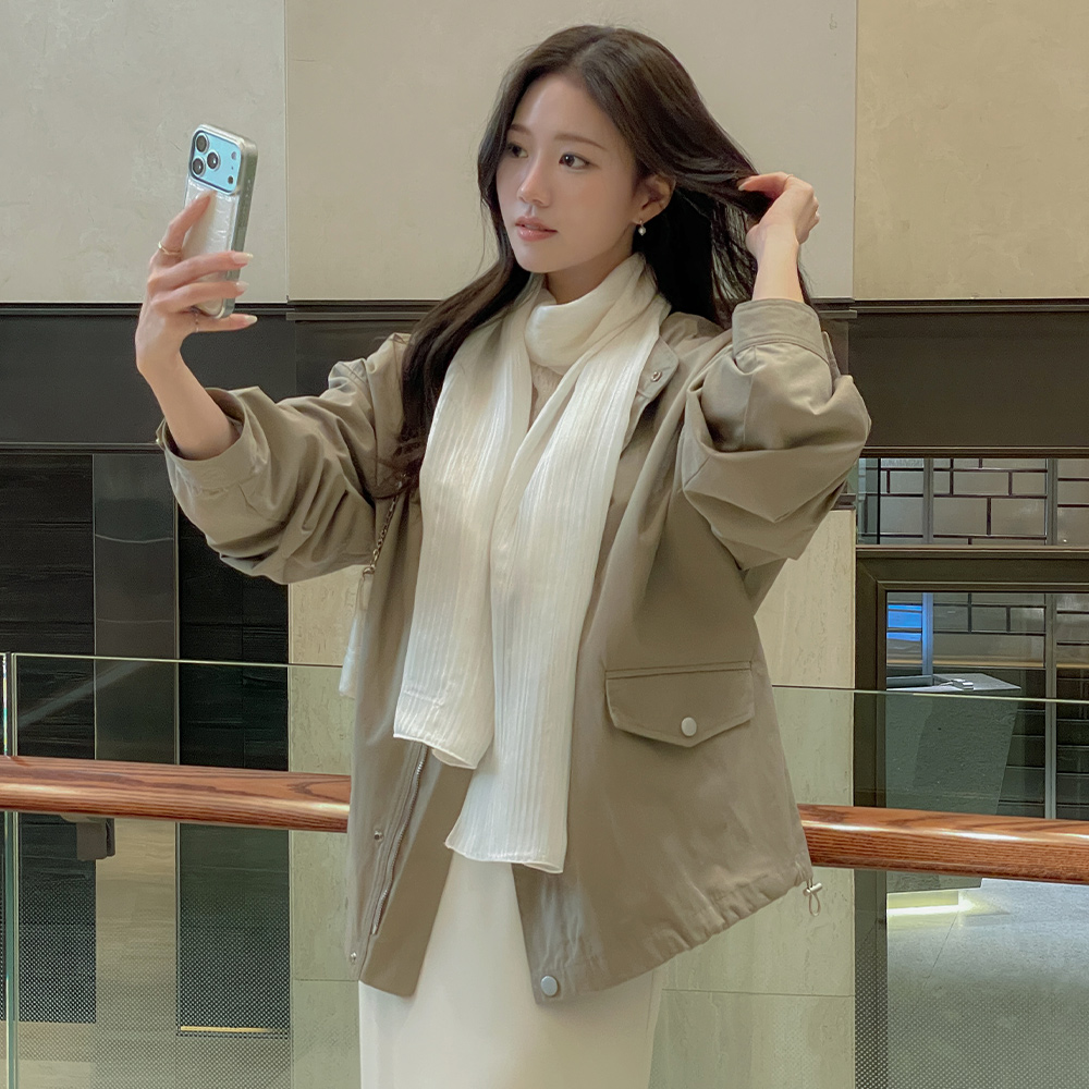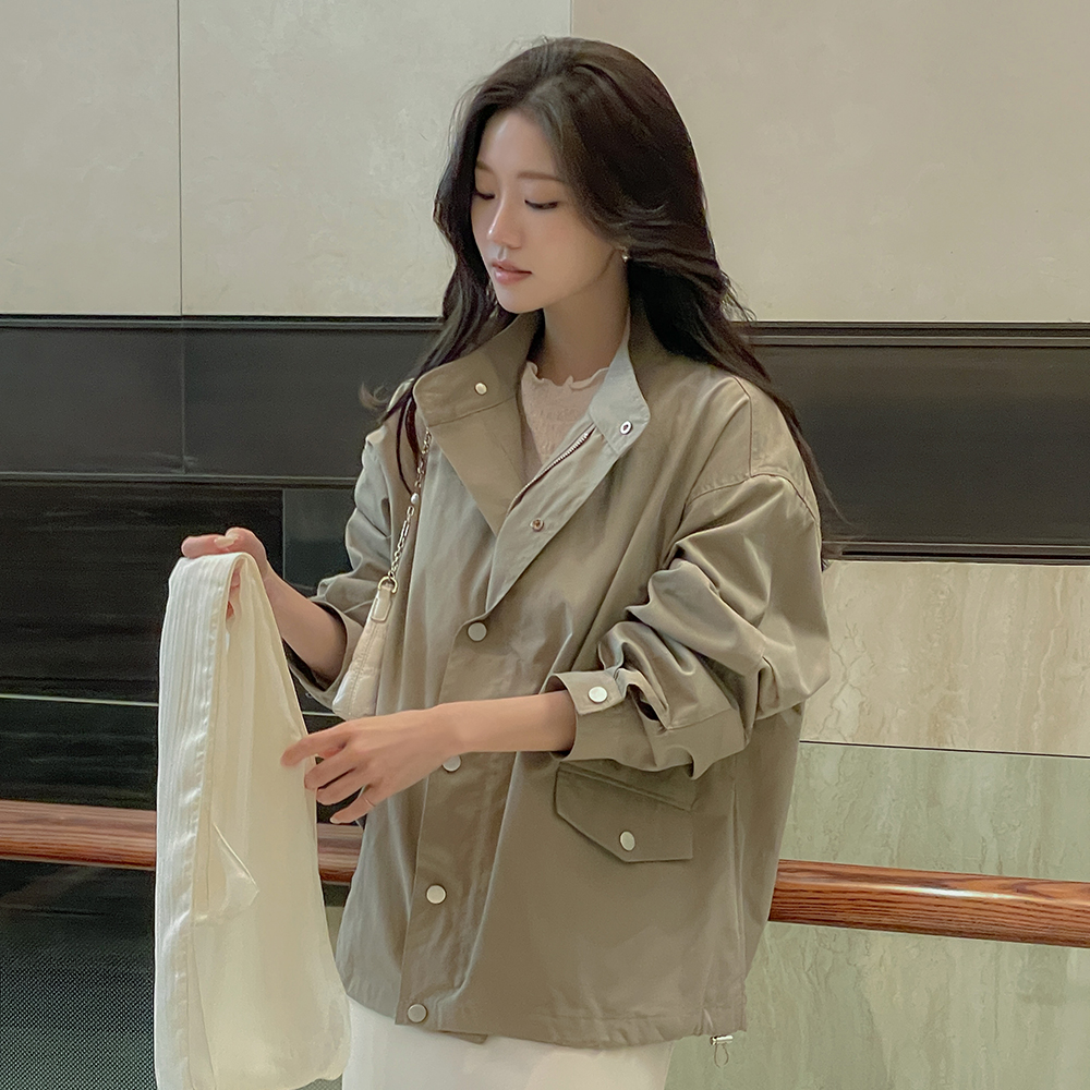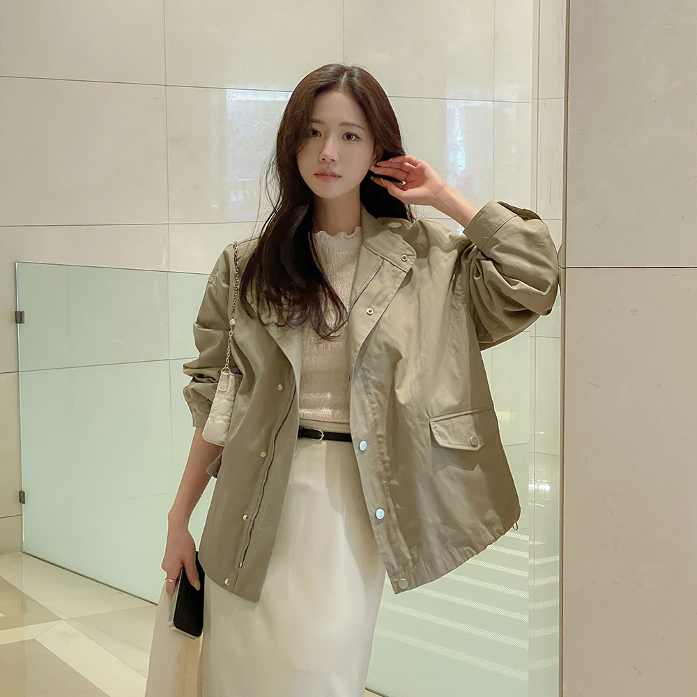 セミハイネック 裾上 ストリング ハーフ サファリジャケット ジャンパ