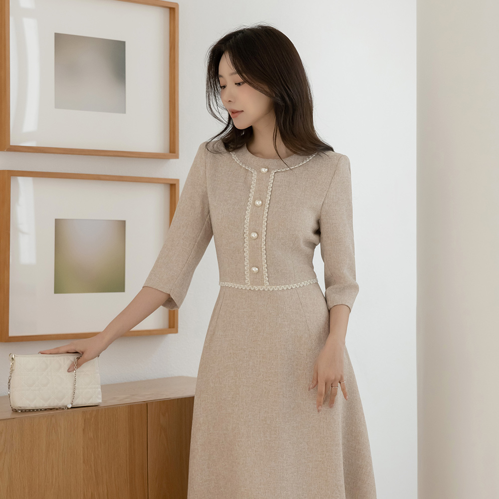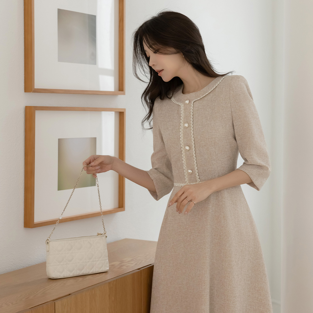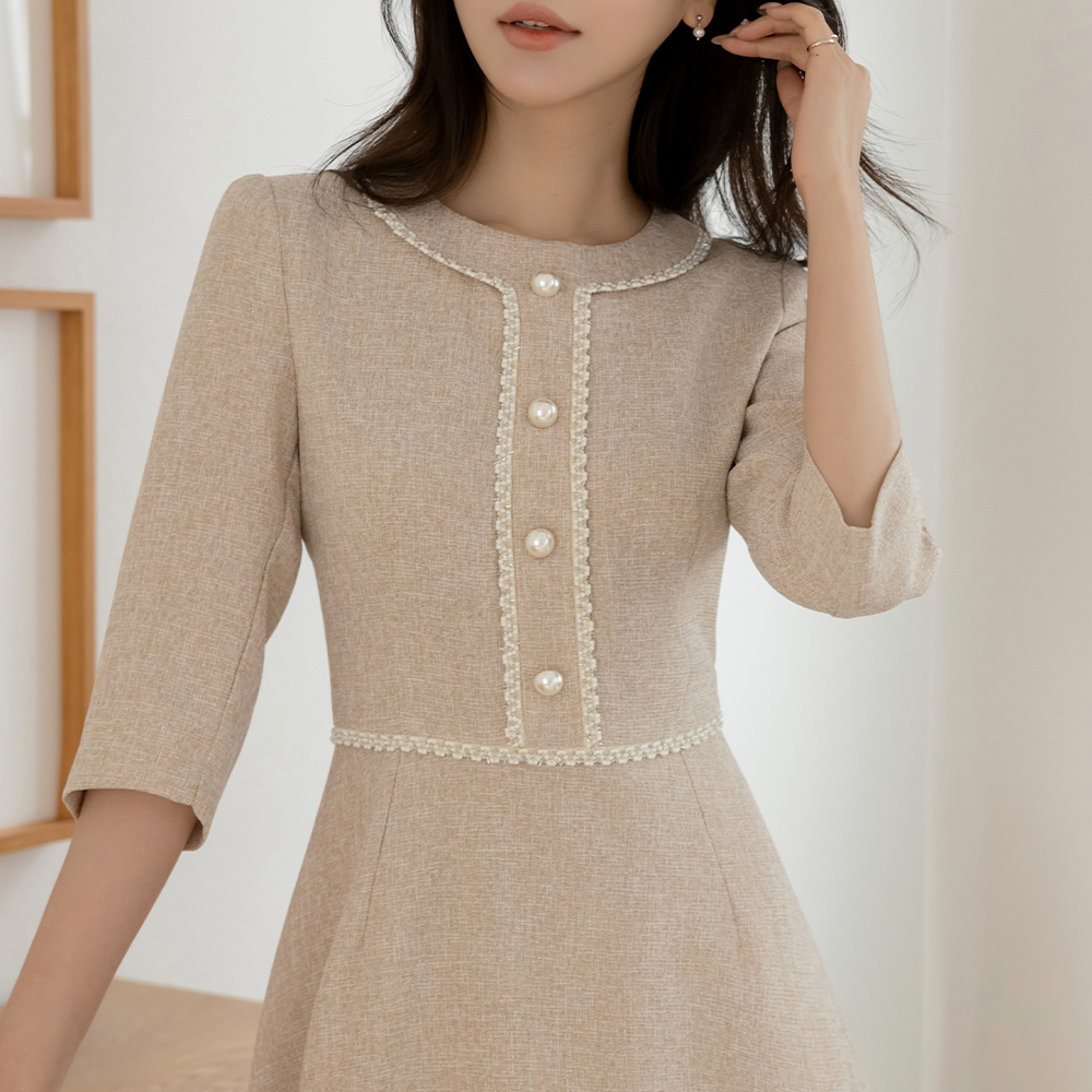 ツイード 真珠 クロップド Aライン ワンピース