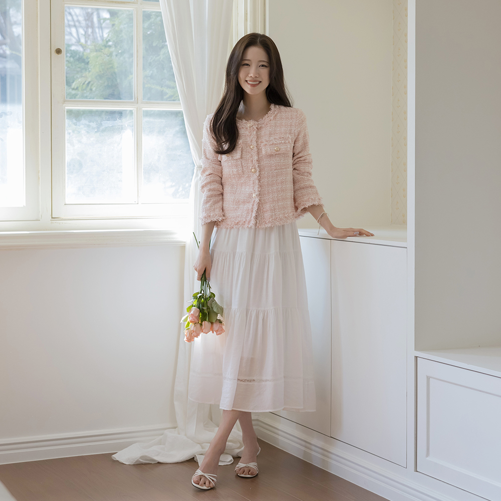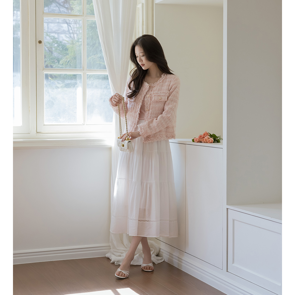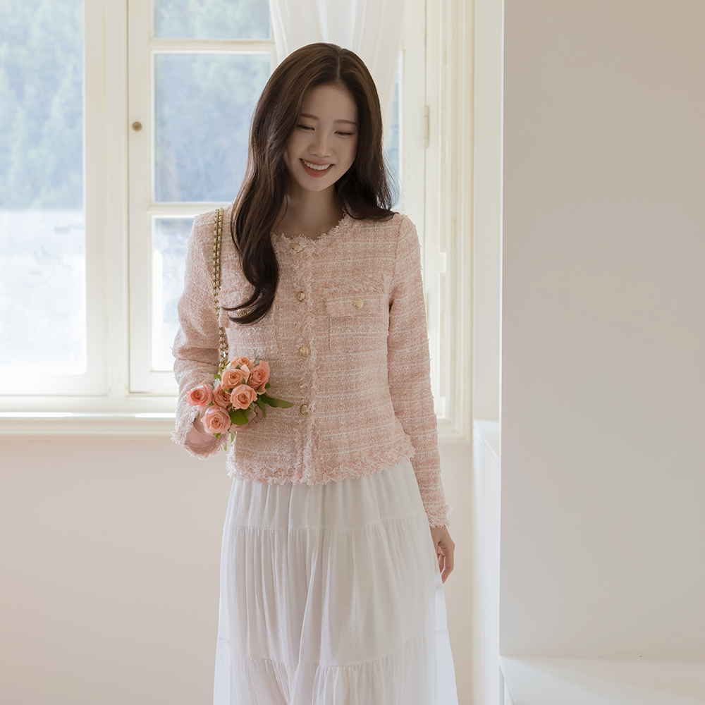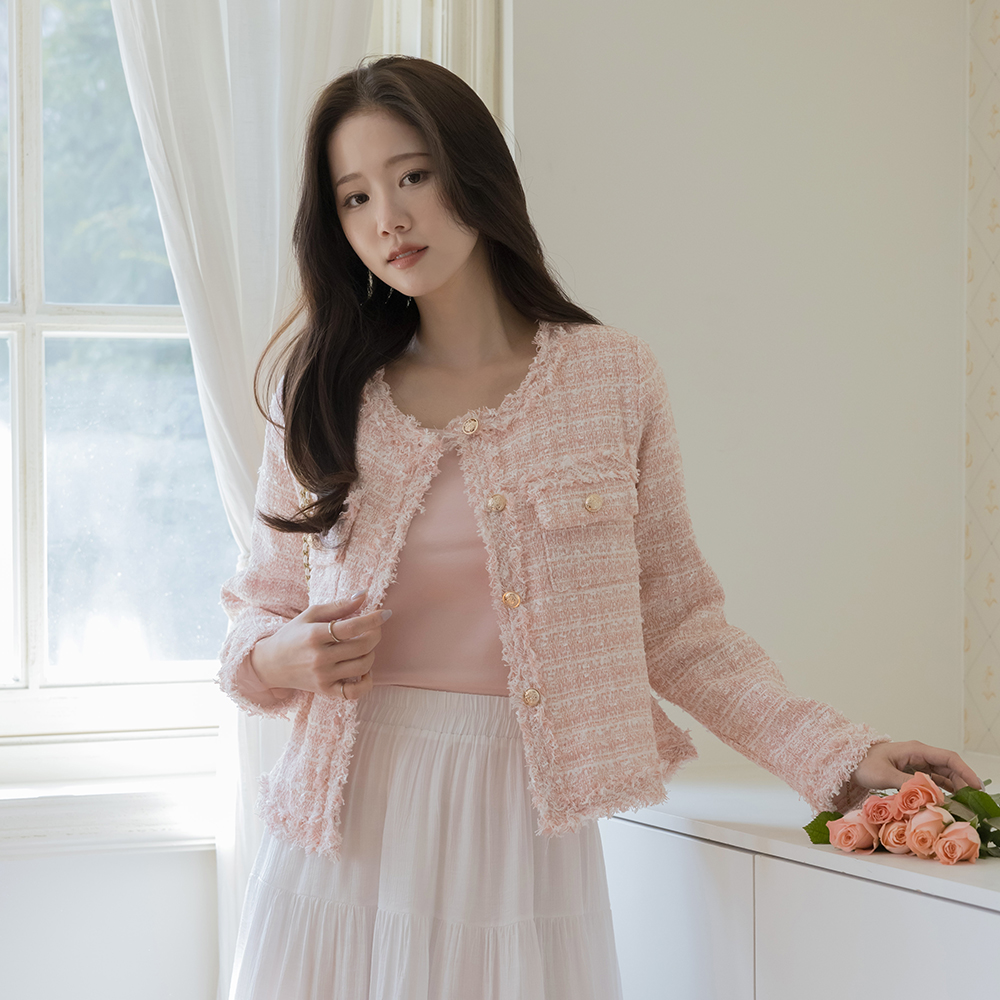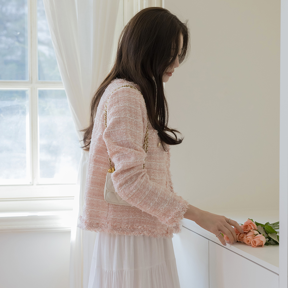 LOVE ラウンドネック タッセル ツイード ジャケット