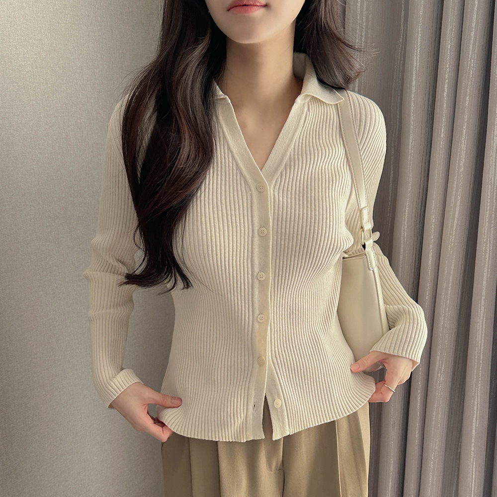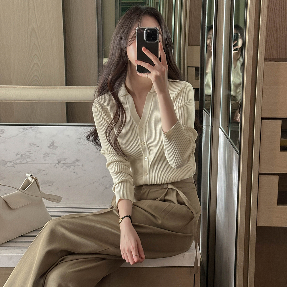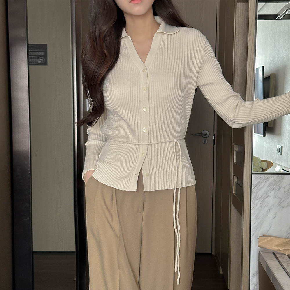 カラー 切開ネック コール天 カーディガン ニット(+ベルト)