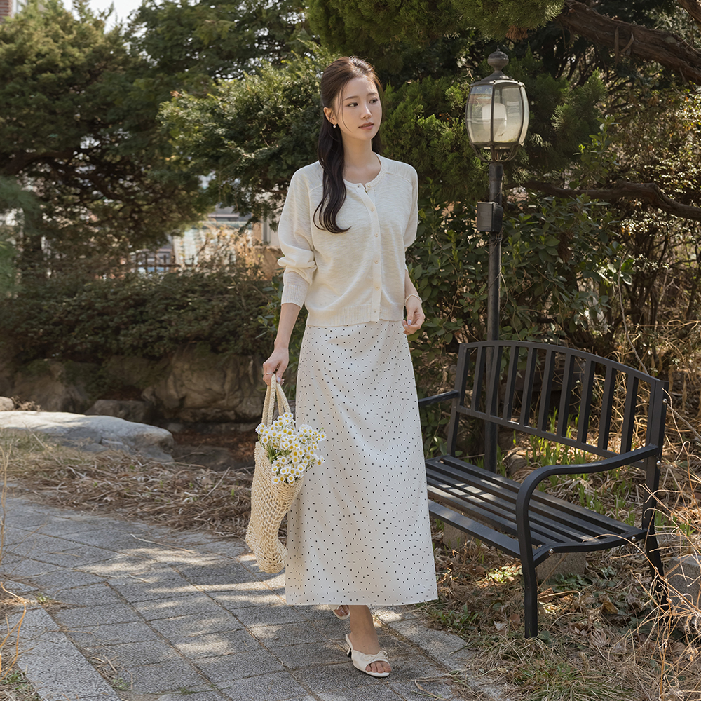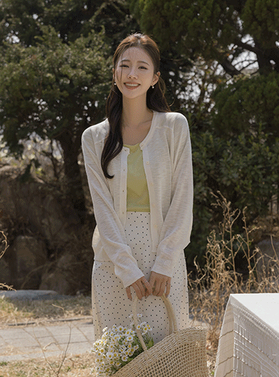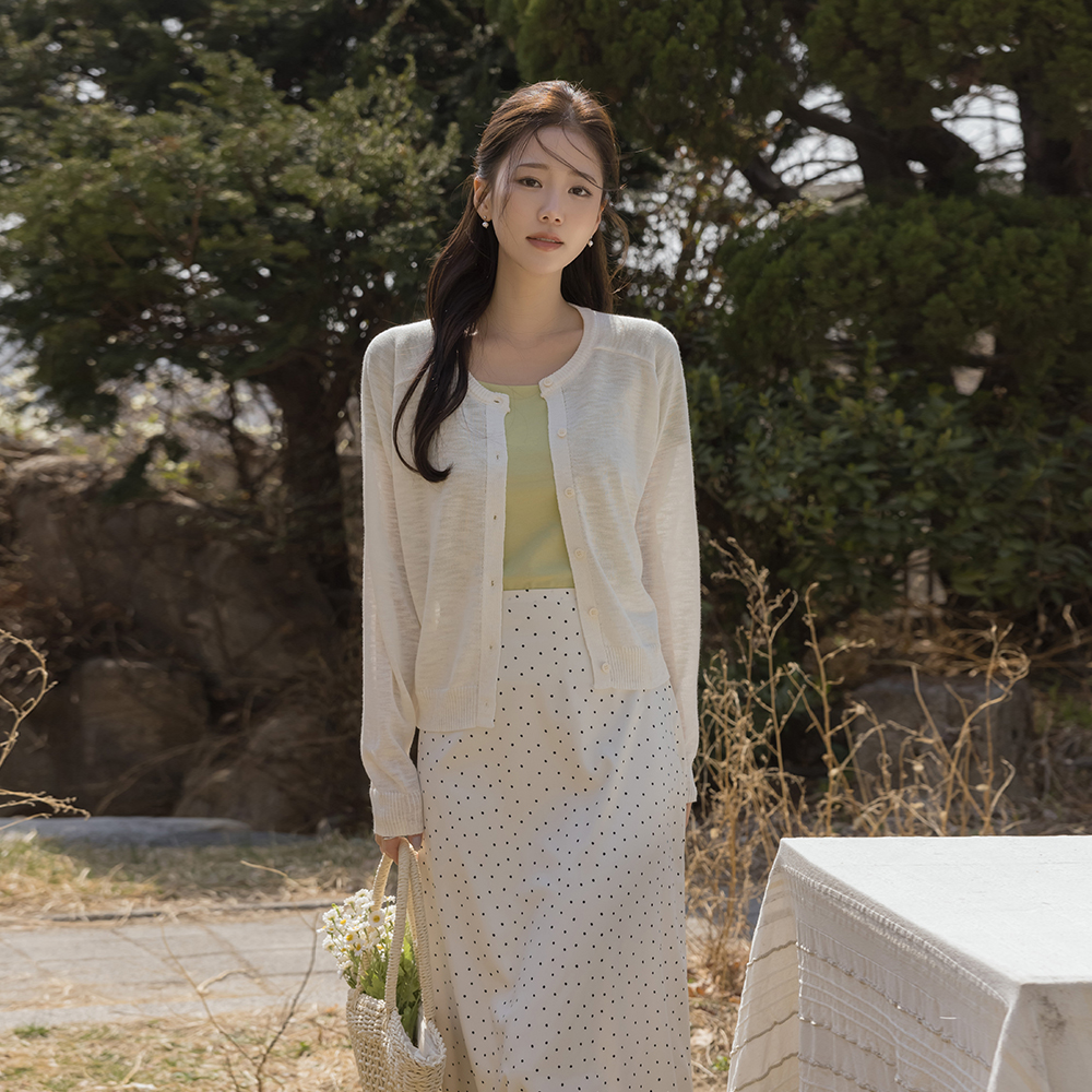 ラウンドネック 螺鈿 ポイント リネン カーディガン