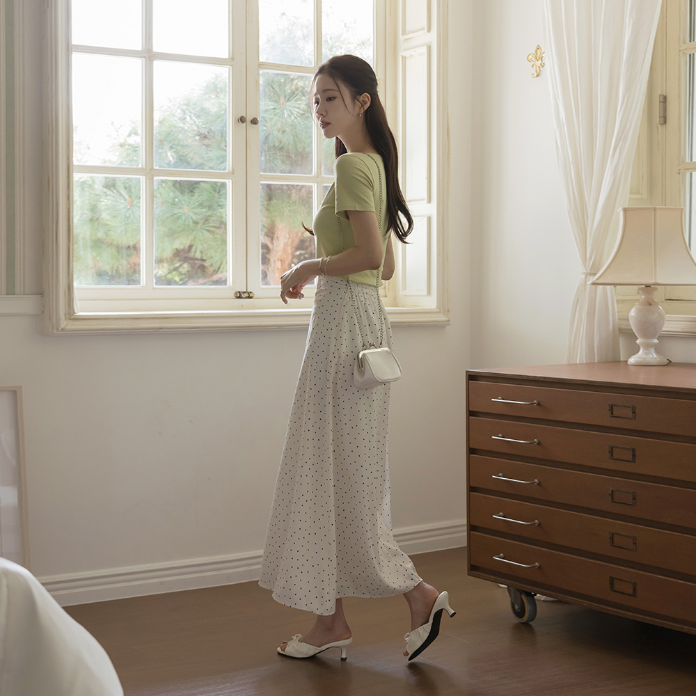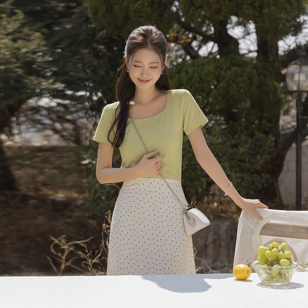 [O:neul] ソフト モダール ほっそりした スクエアネック 半そで ティーシャツ