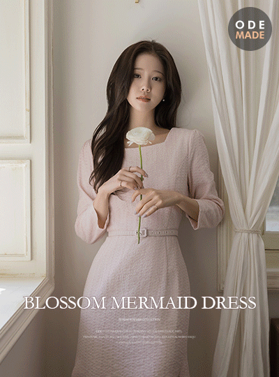 [O:neul] 桜花 スクエアネック マーメイド ワンピース(+ベルト)