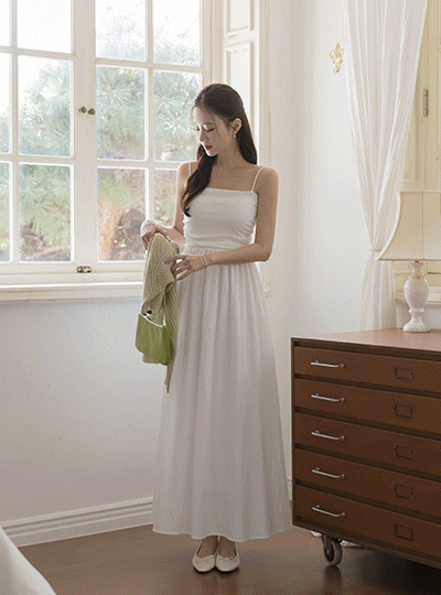パッド内蔵 シャーリング キャップそでなし マキシ ワンピース