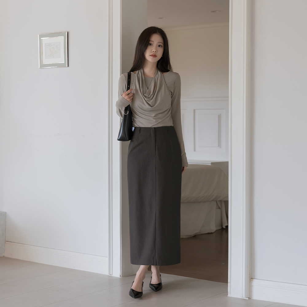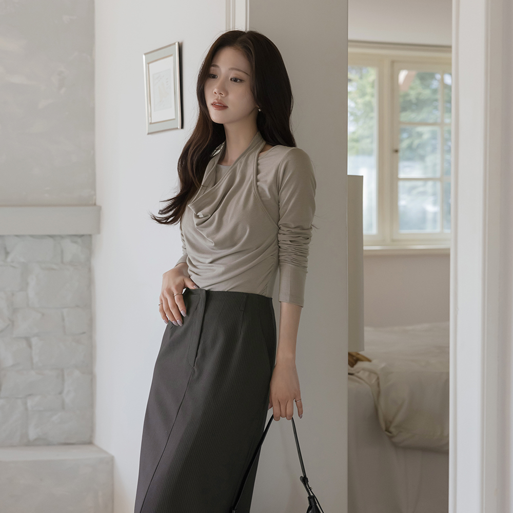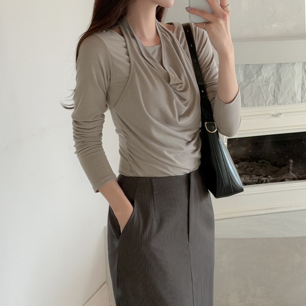 ホールター レイヤード シャーリング 弾力 ティーシャツ