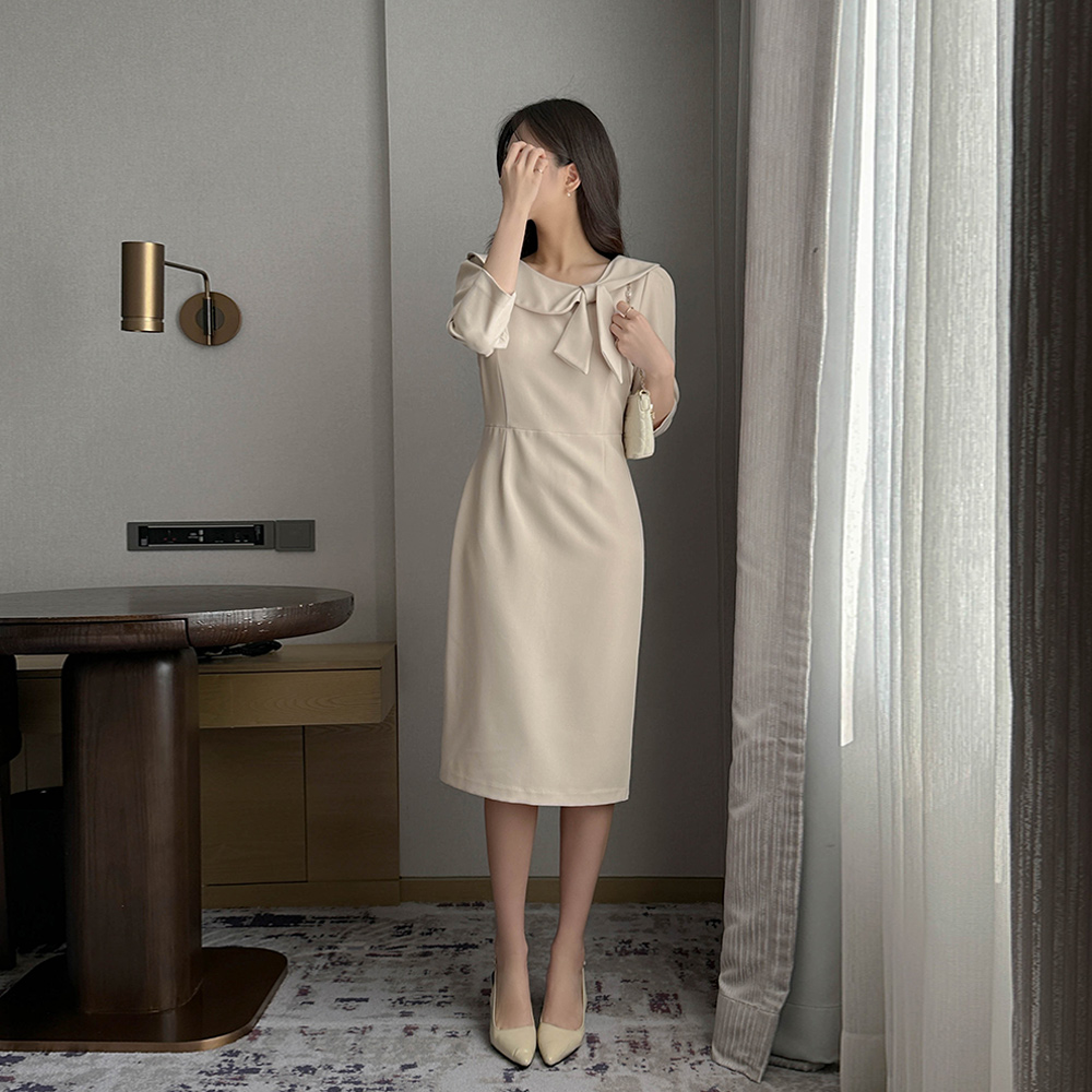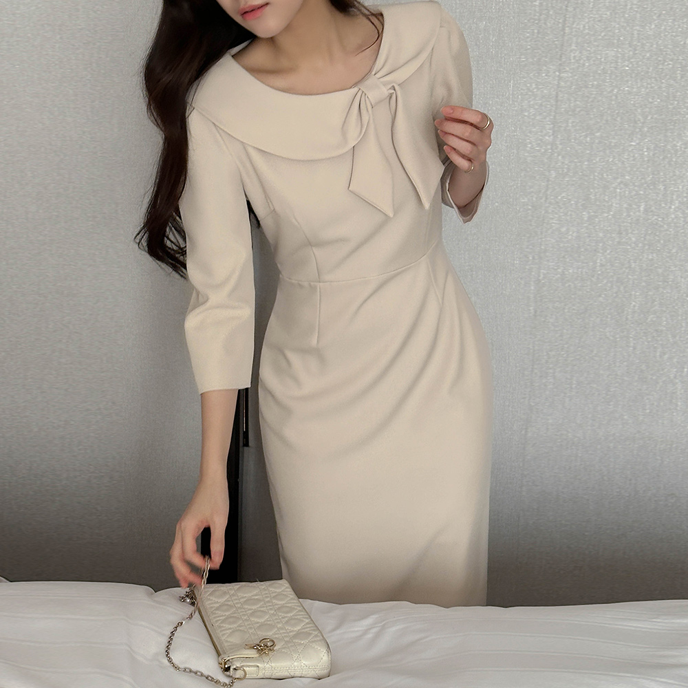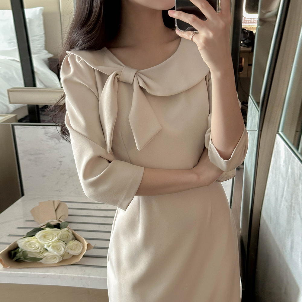 리본매듭 クロップド Hライン ワンピース