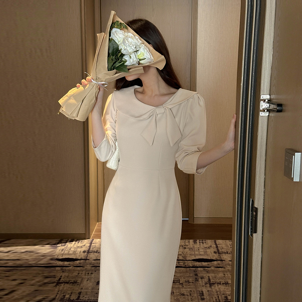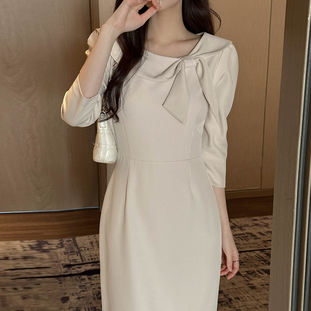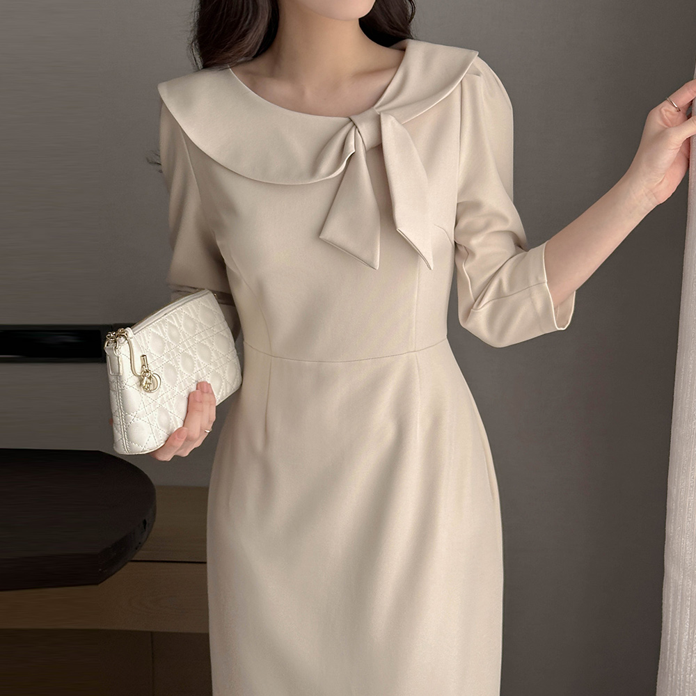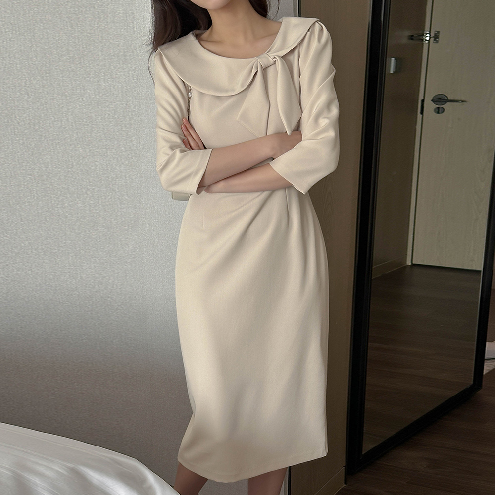 리본매듭 クロップド Hライン ワンピース