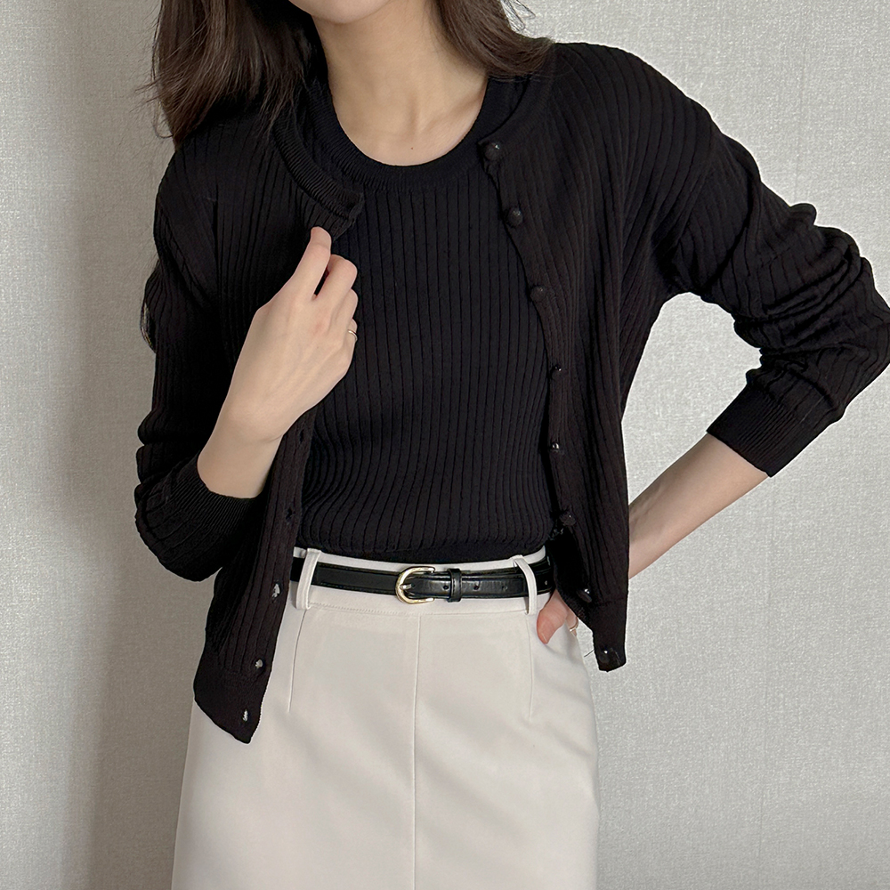ベーシック ラウンドネック コール天 ニット カーディガン