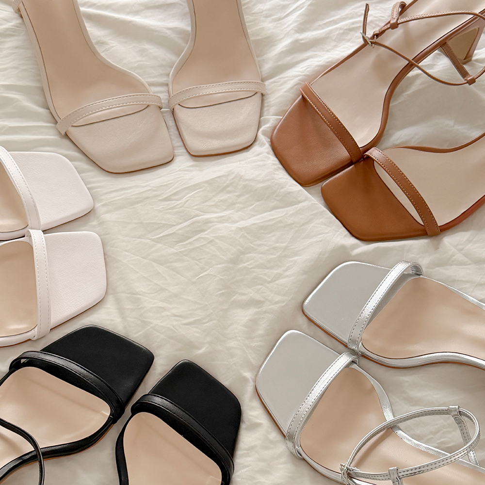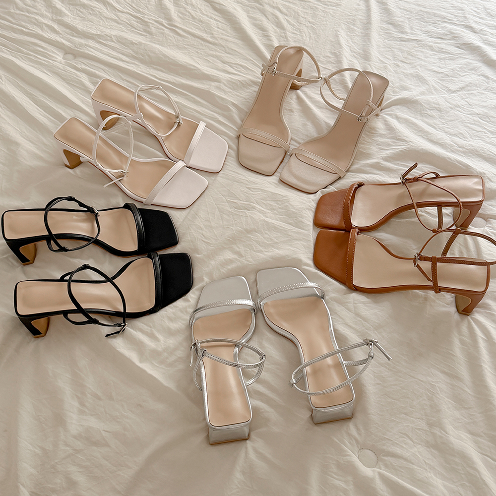 デーリー スクエア 오픈토 サンダル ヒール