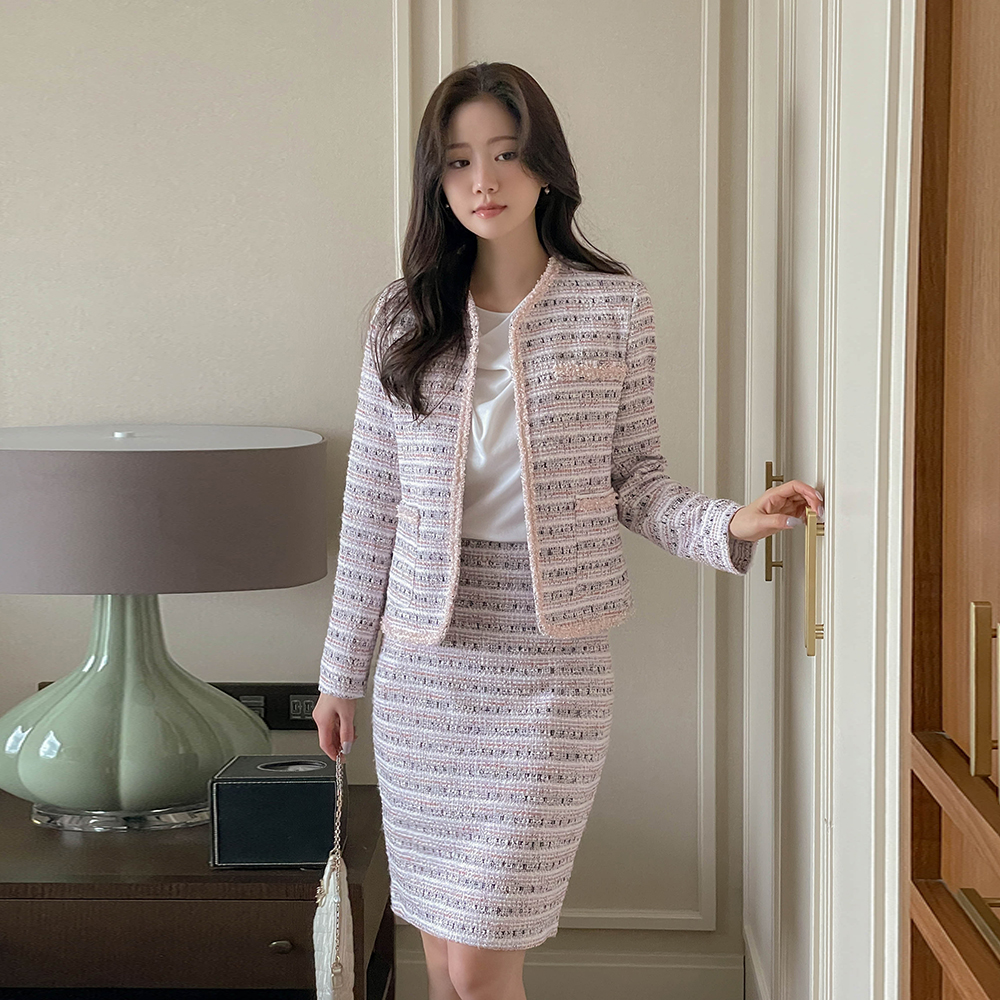 リナ 配色 弾力 ツイード Set-up ジャケット