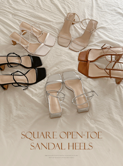 デーリー スクエア 오픈토 サンダル ヒール