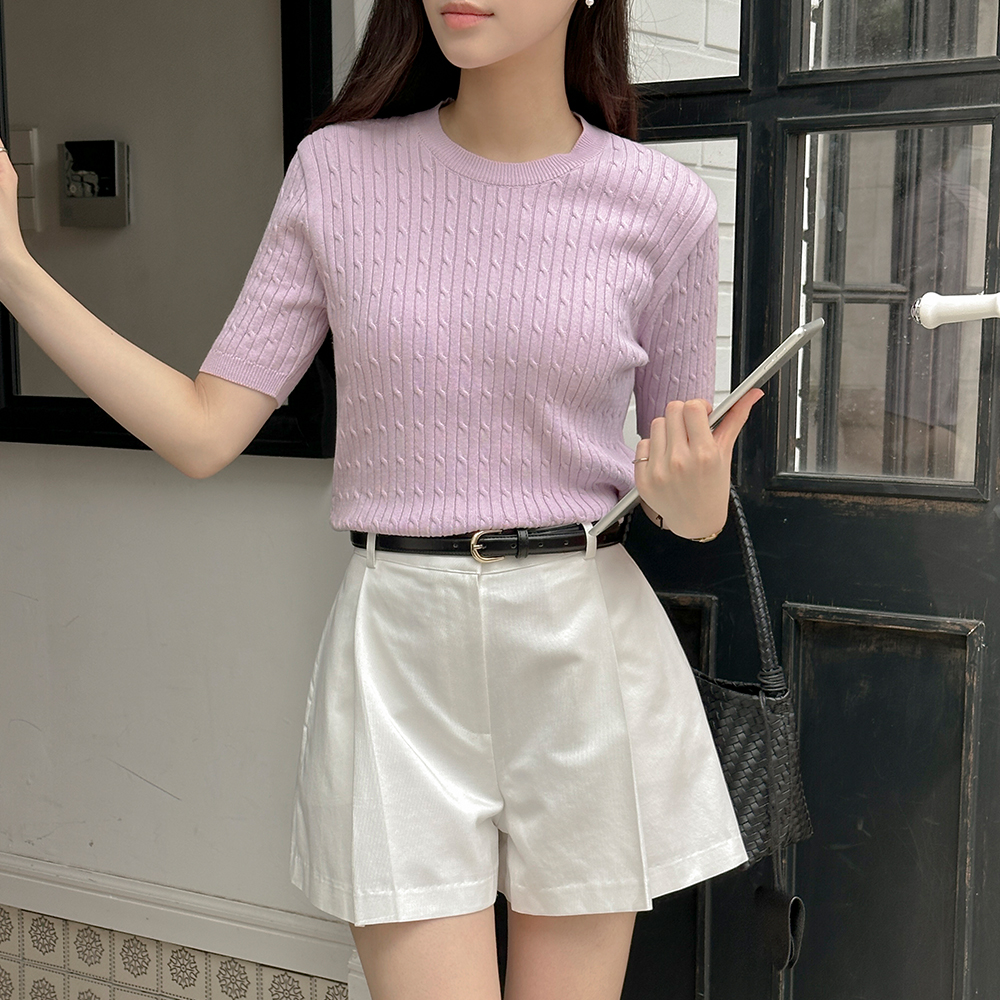 수피마 コットン ねじる カラー 半そで ニット