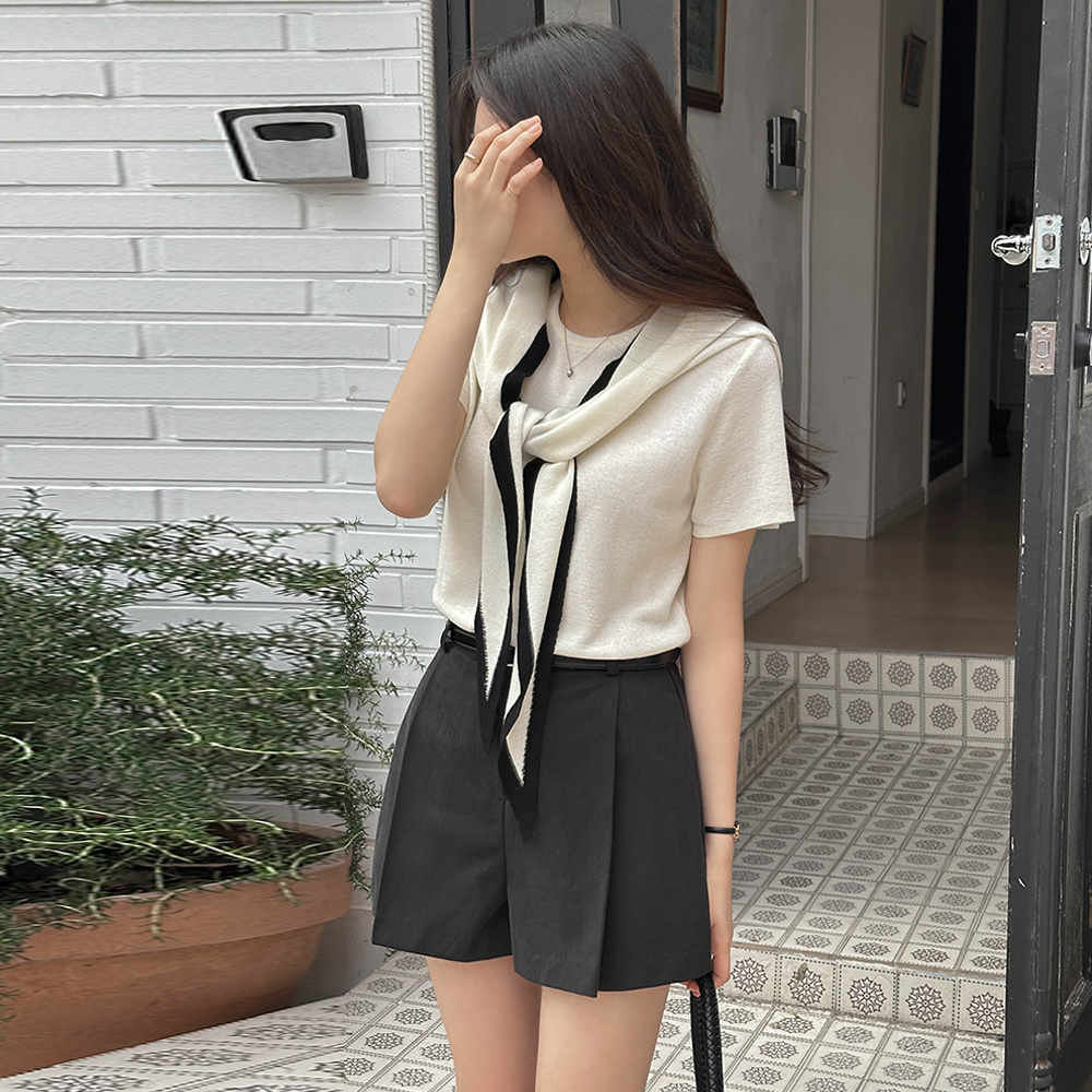 ラウンドネック ペンダント 半そで ニット(+ショール)