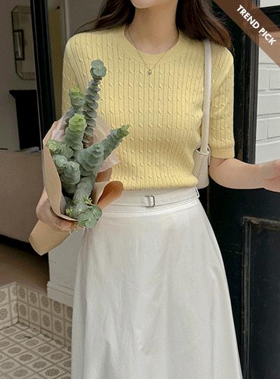 수피마 コットン ねじる カラー 半そで ニット