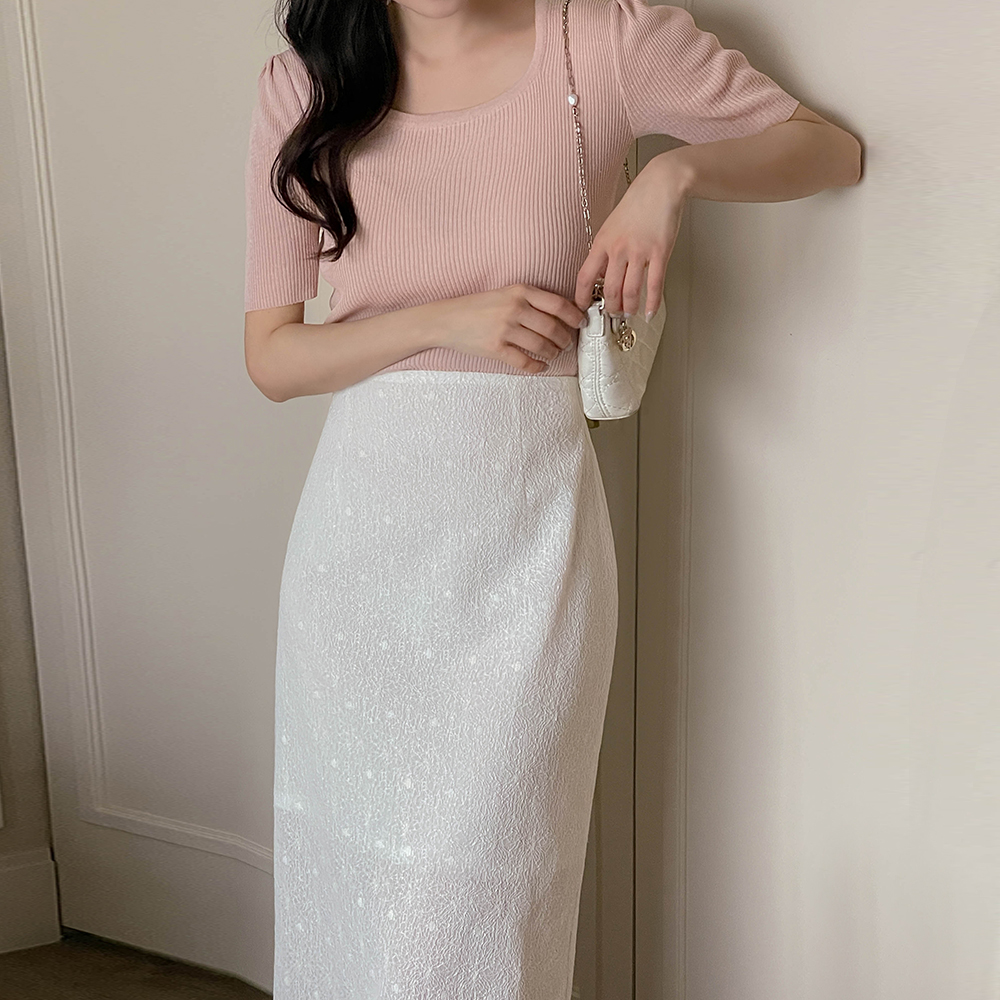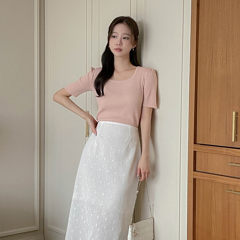 パフ袖 スクエアネック コール天 ニット