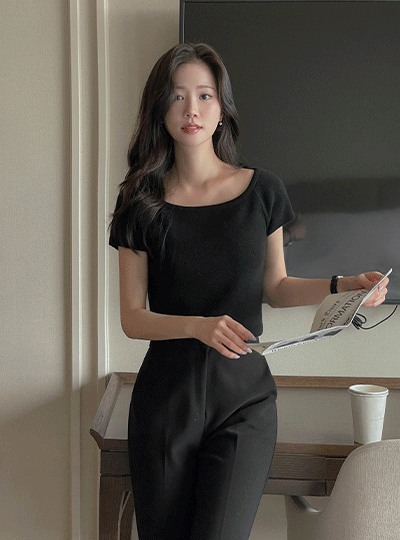[O:neul] ソフト モダール ほっそりした スクエアネック 半そで ティーシャツ
