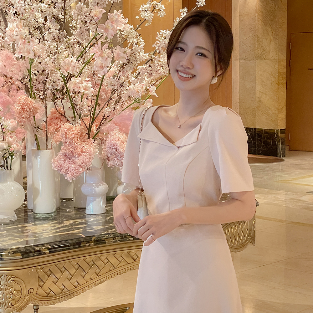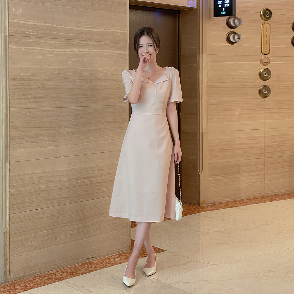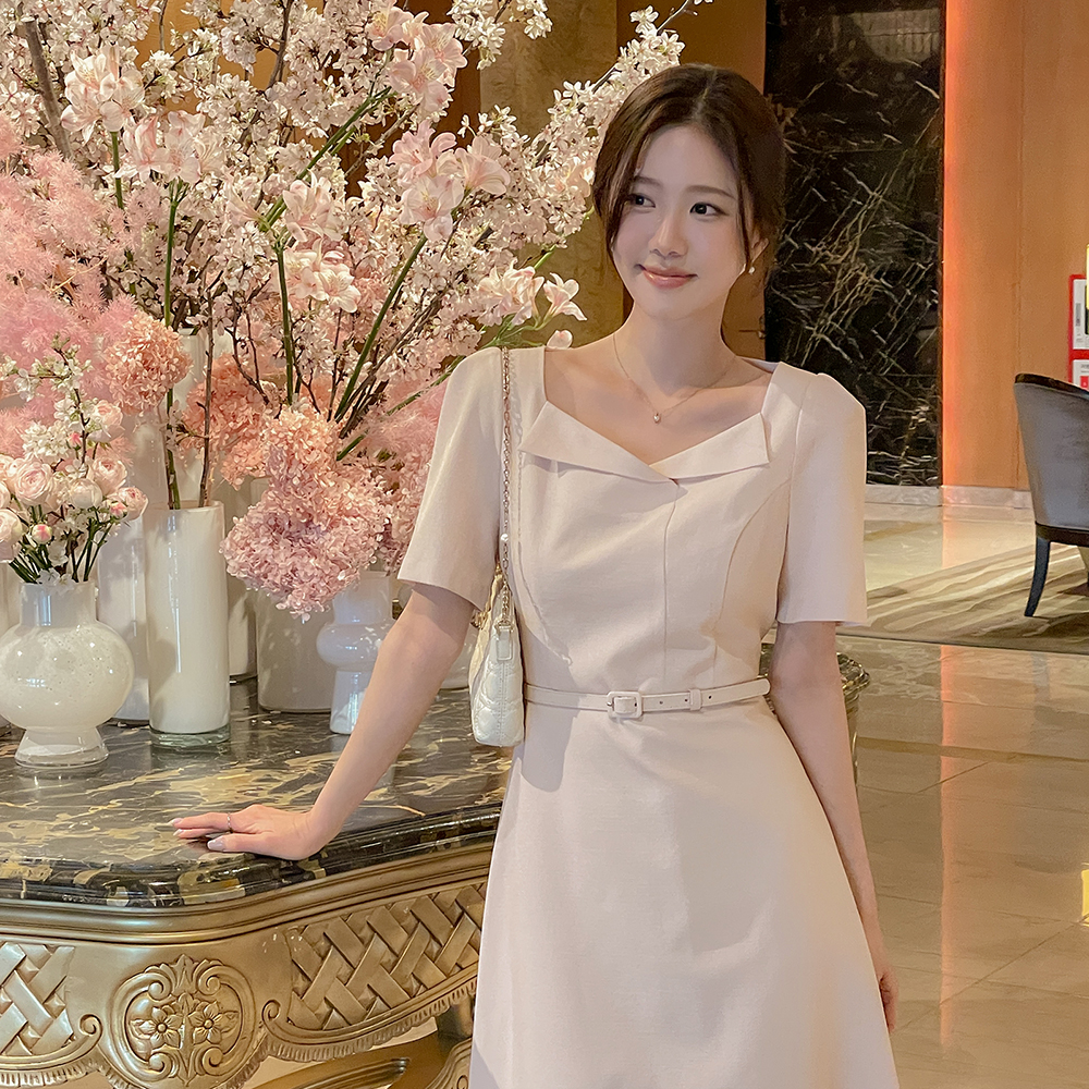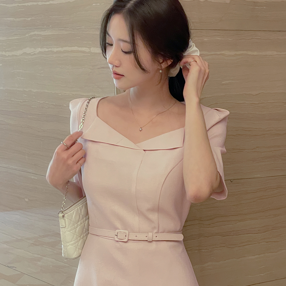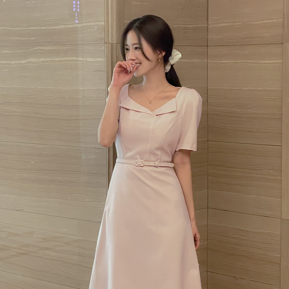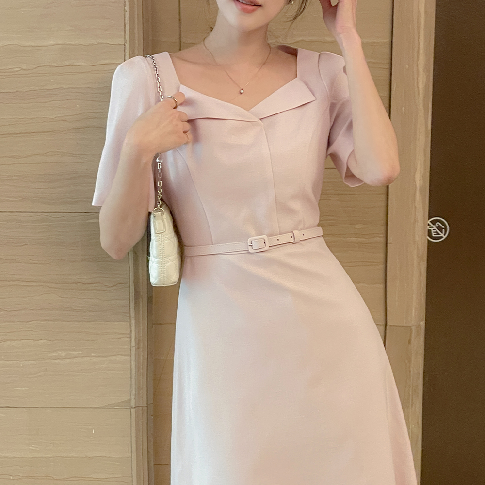 줄리 スクエア カラーネック Aライン ワンピース(+ベルト)