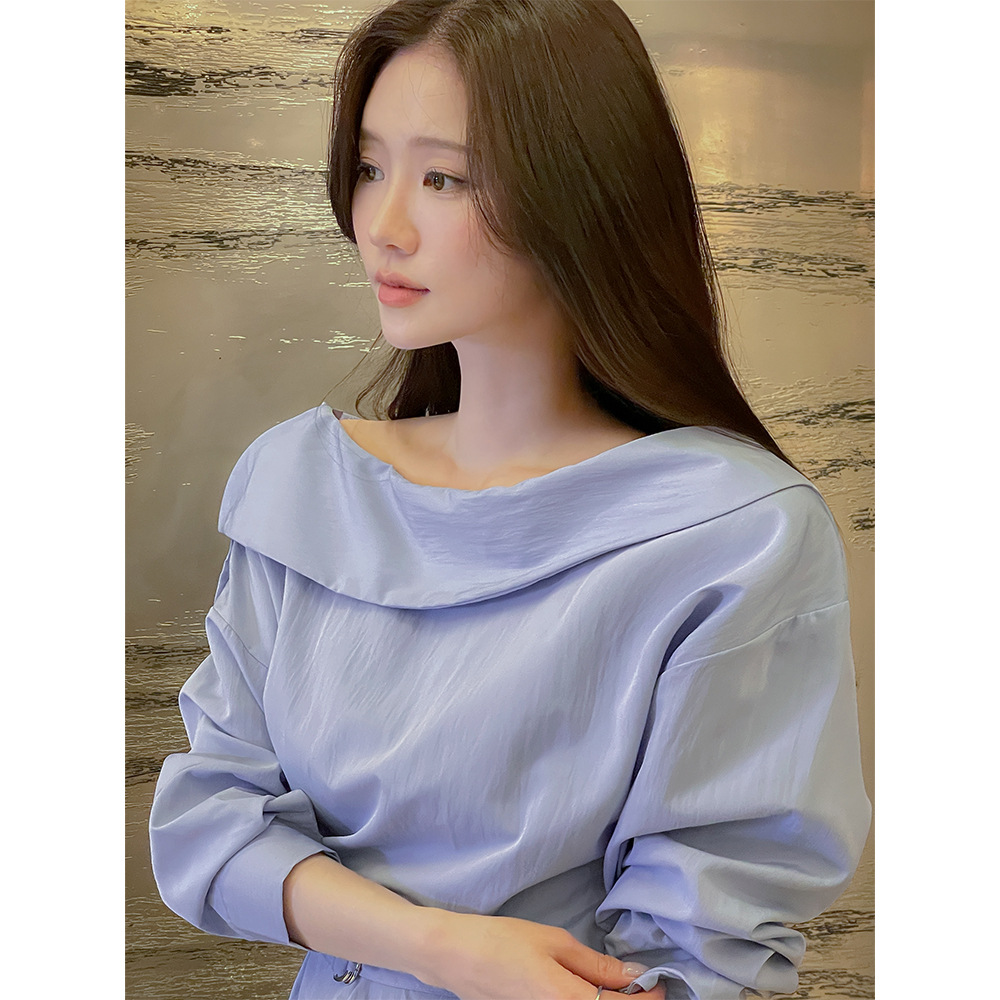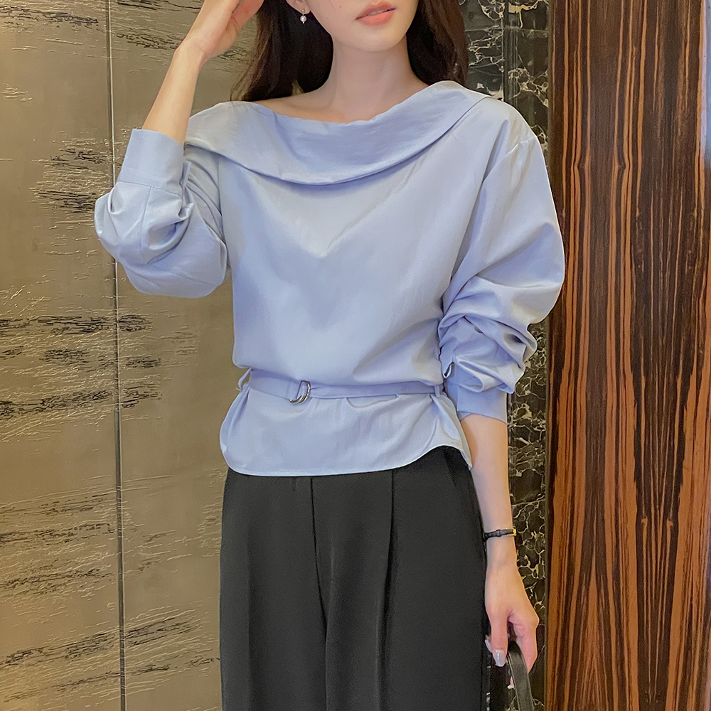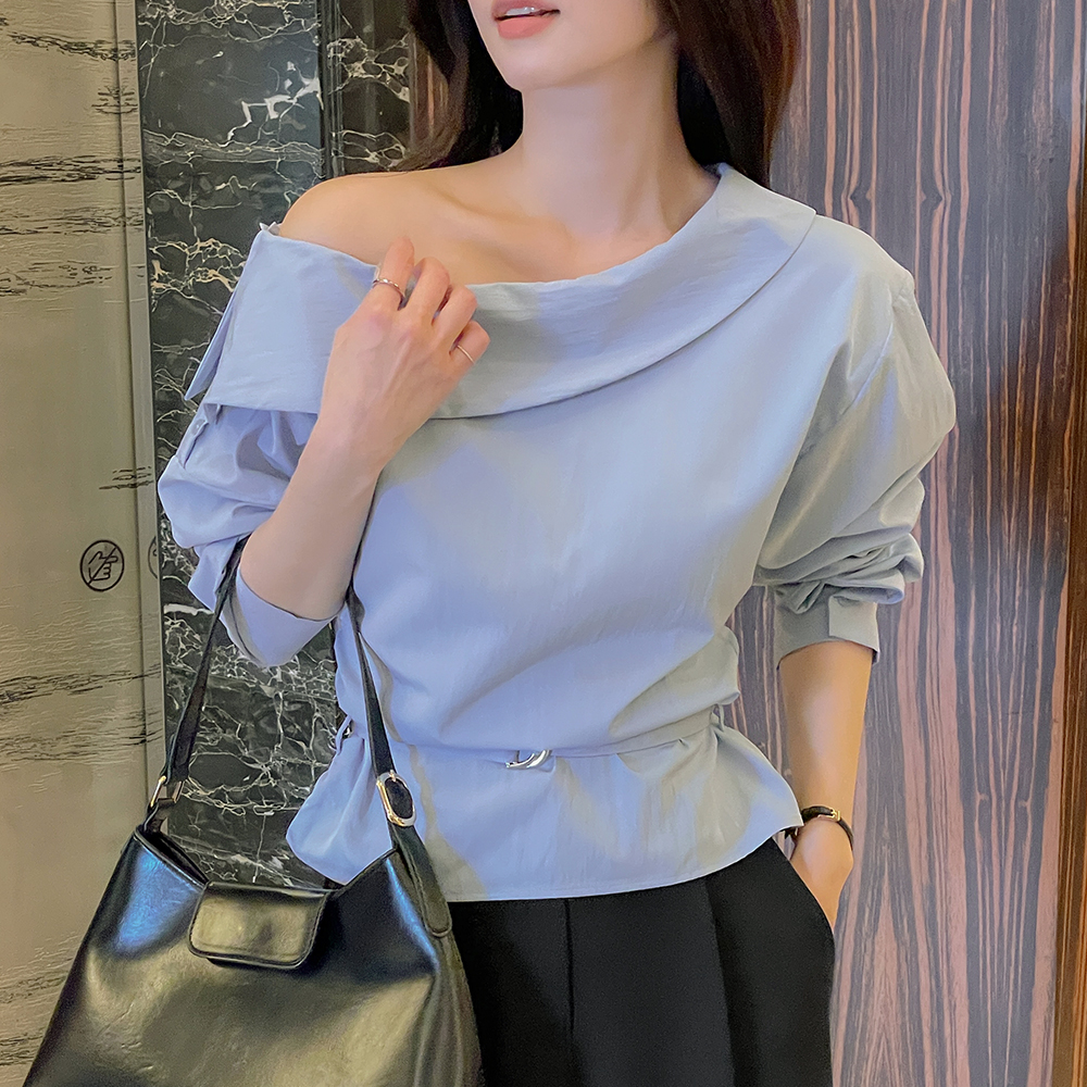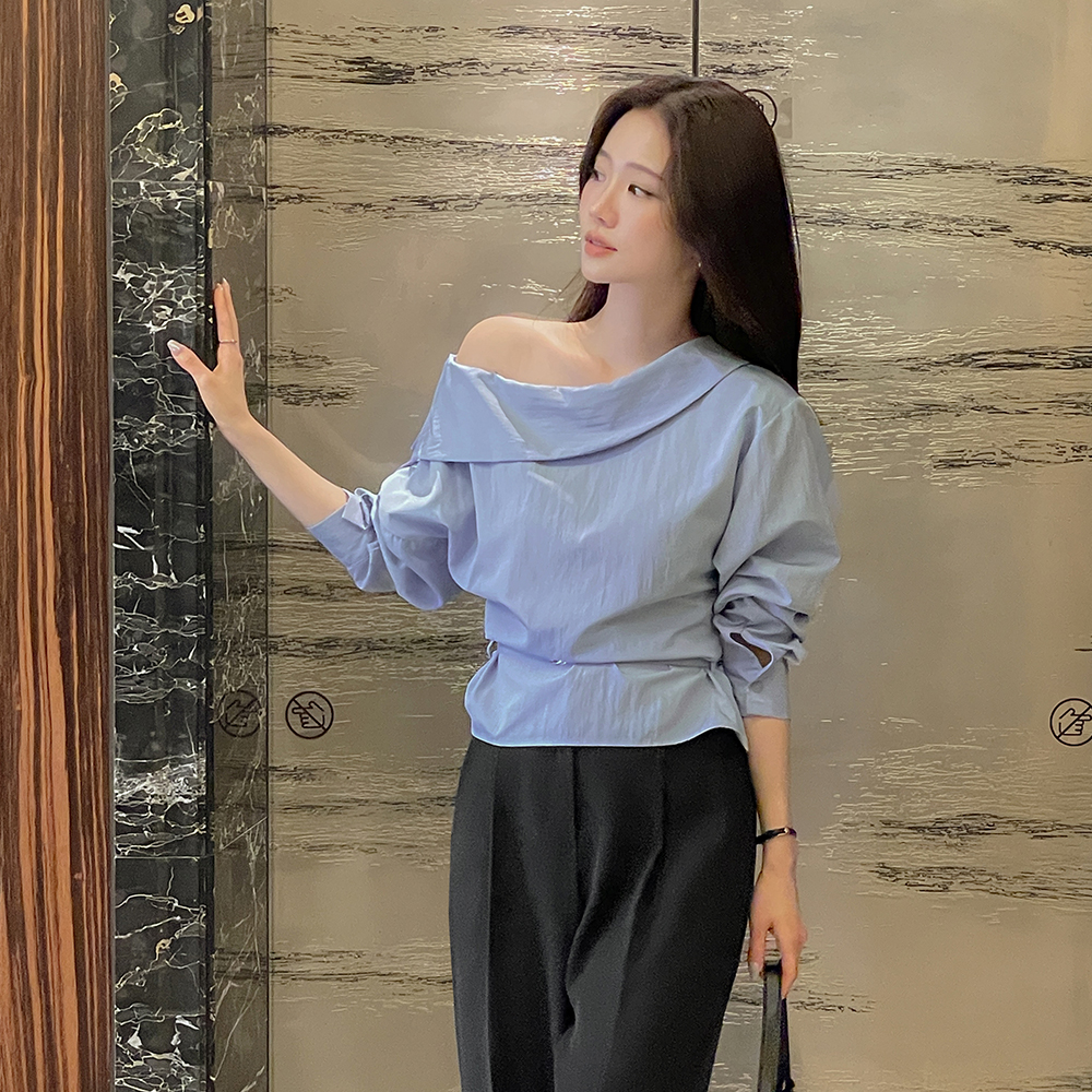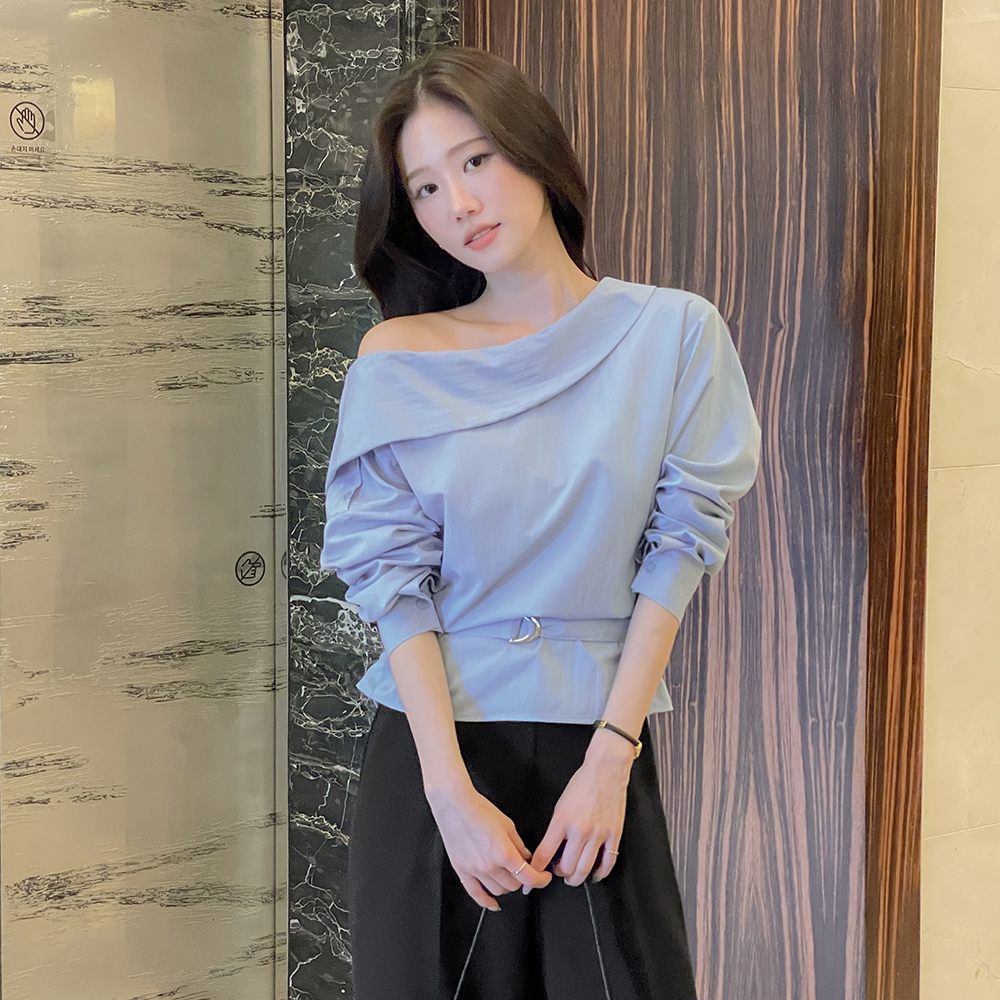 一方ショルダー ボタン シャーリング ブラウス(+ベルト)