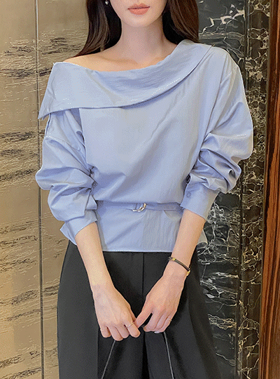 一方ショルダー ボタン シャーリング ブラウス(+ベルト)