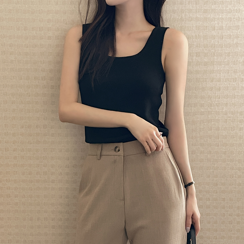 氷 スクエアネック 袖なし ニット