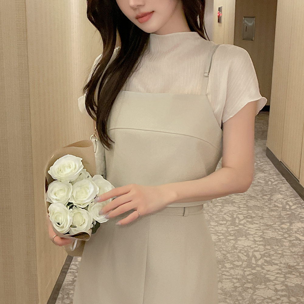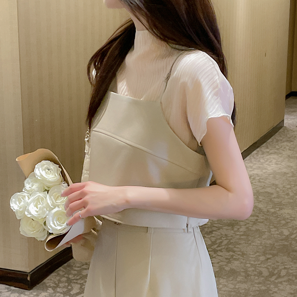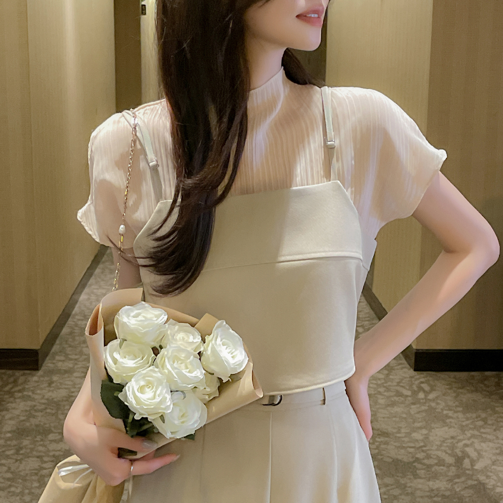 ロマンチック シースルー セミハイネック キャップップ ブラウス
