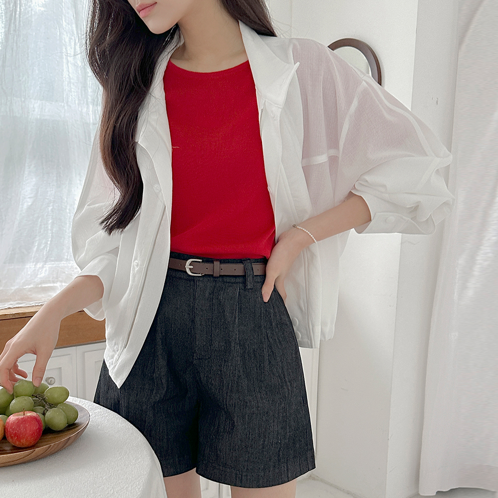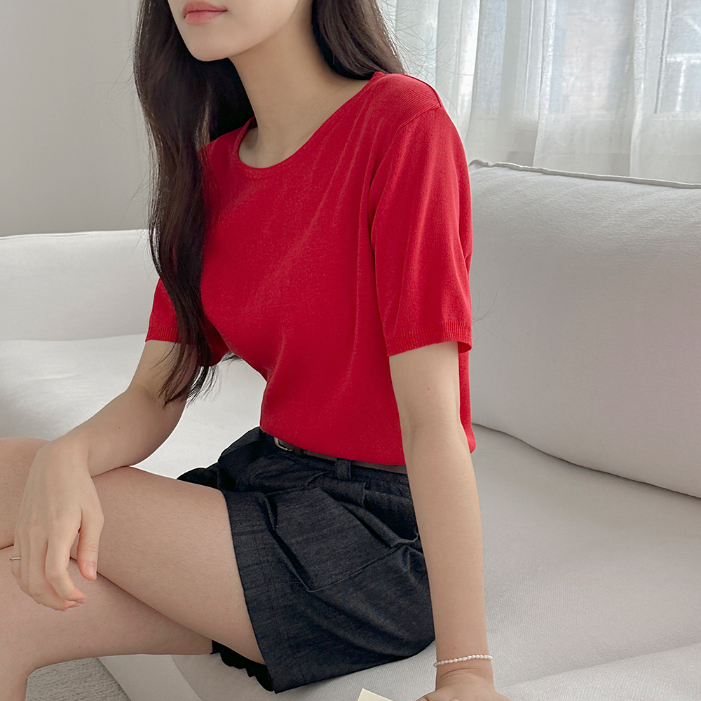 カラー 반버튼 リネン コール天 半そで ニット