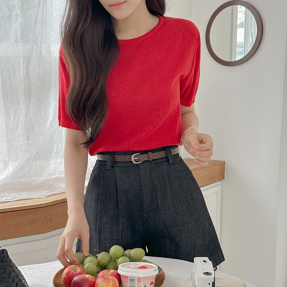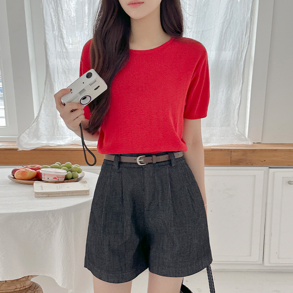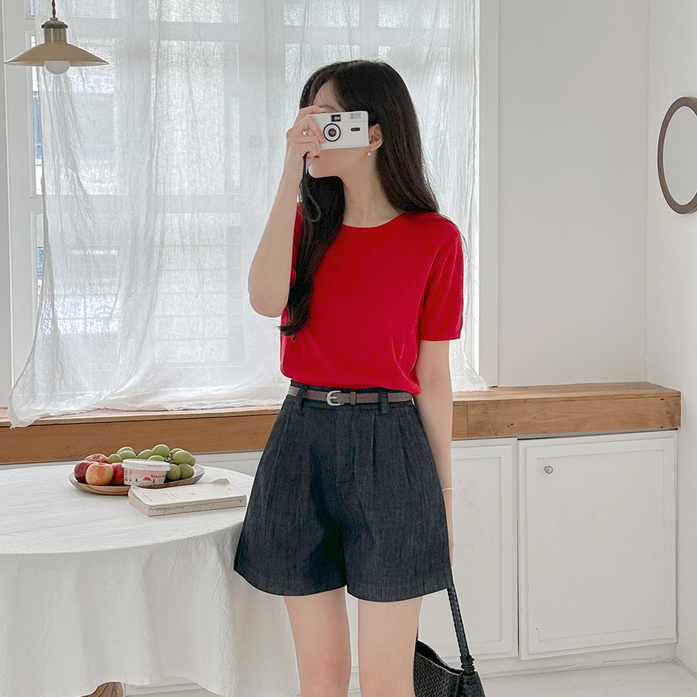 サマー 後面バンド ピンタック ハーフ パンツ(+ベルト)