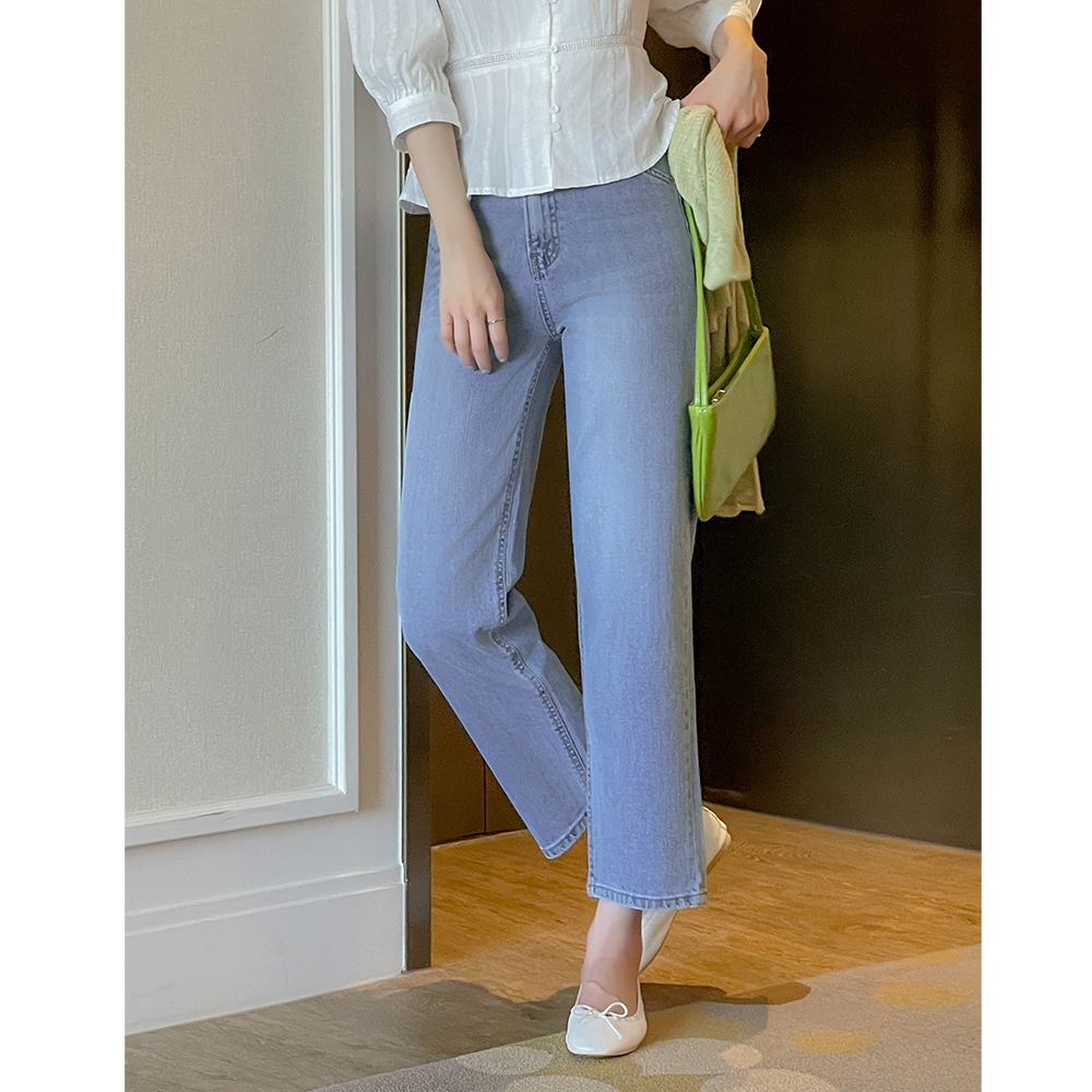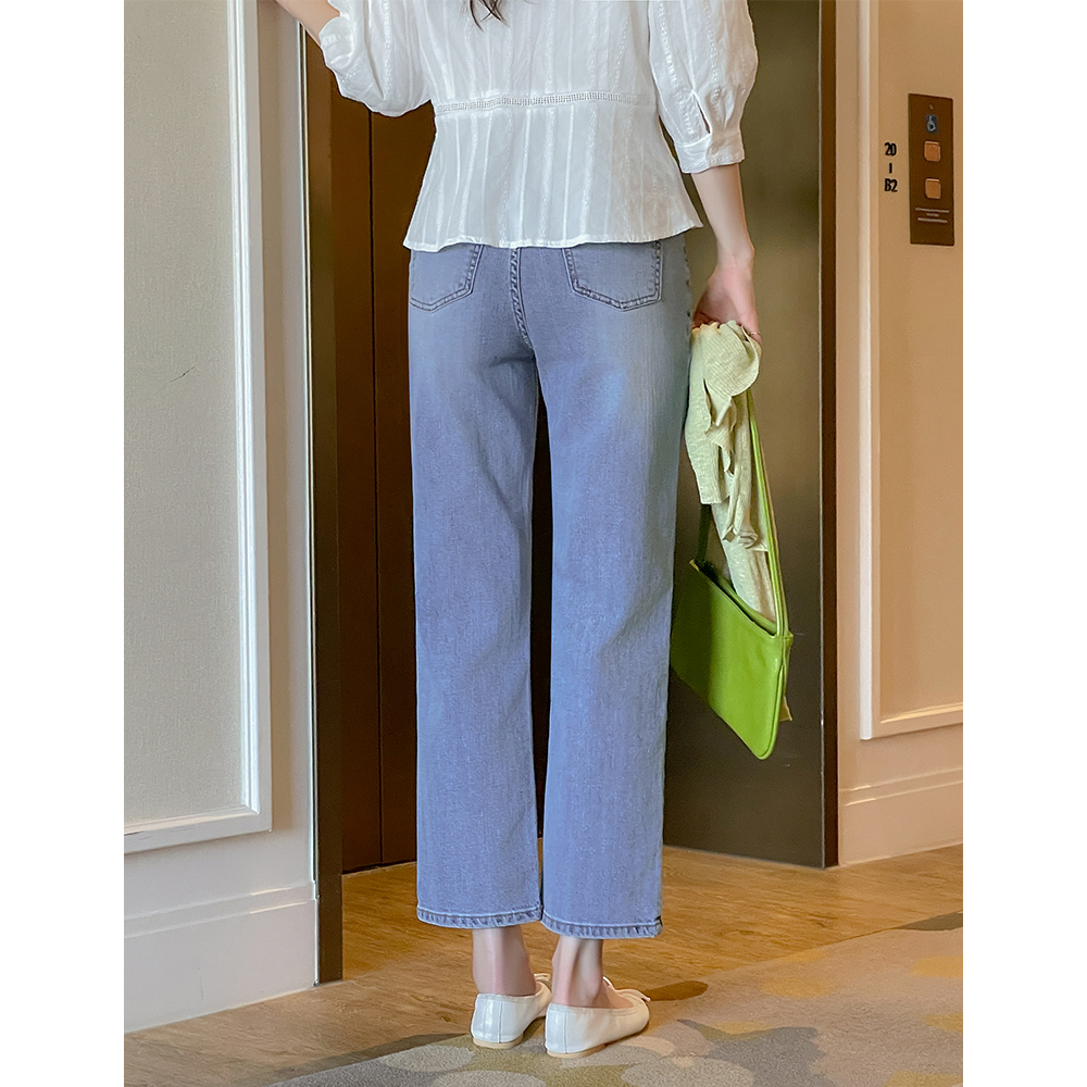 着心地のいい 9分 ストレート Stretchy-Waist デニム パンツ