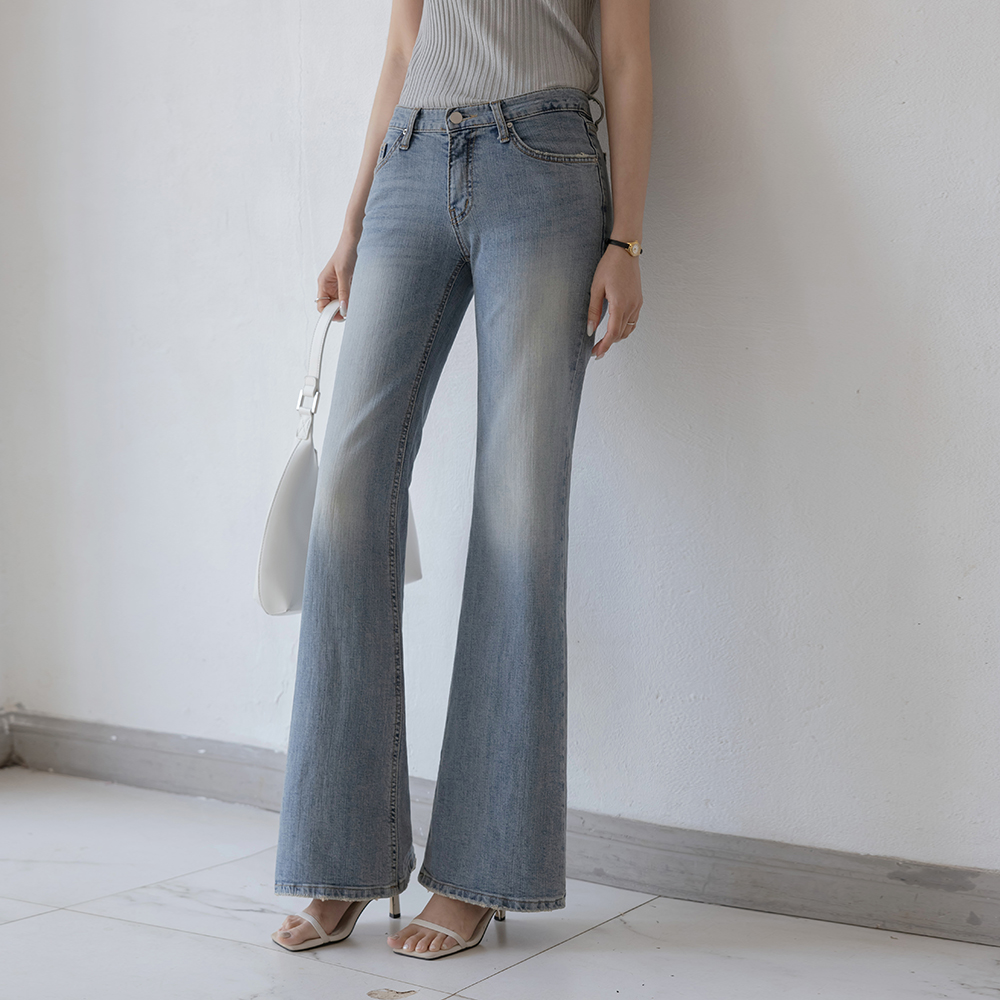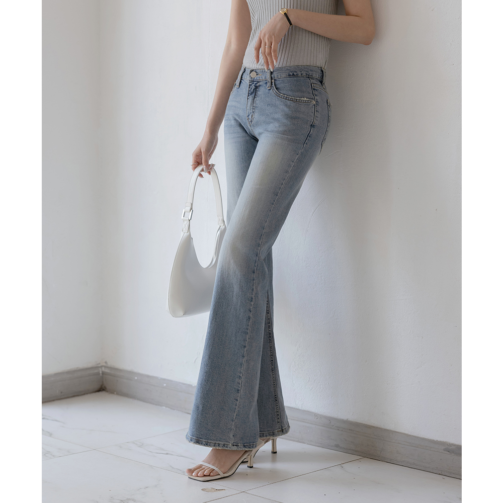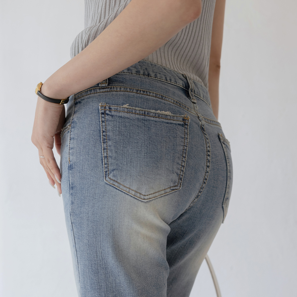 裾上 カッティング ウォッシング ブーツカット 弾力 デニム パンツ