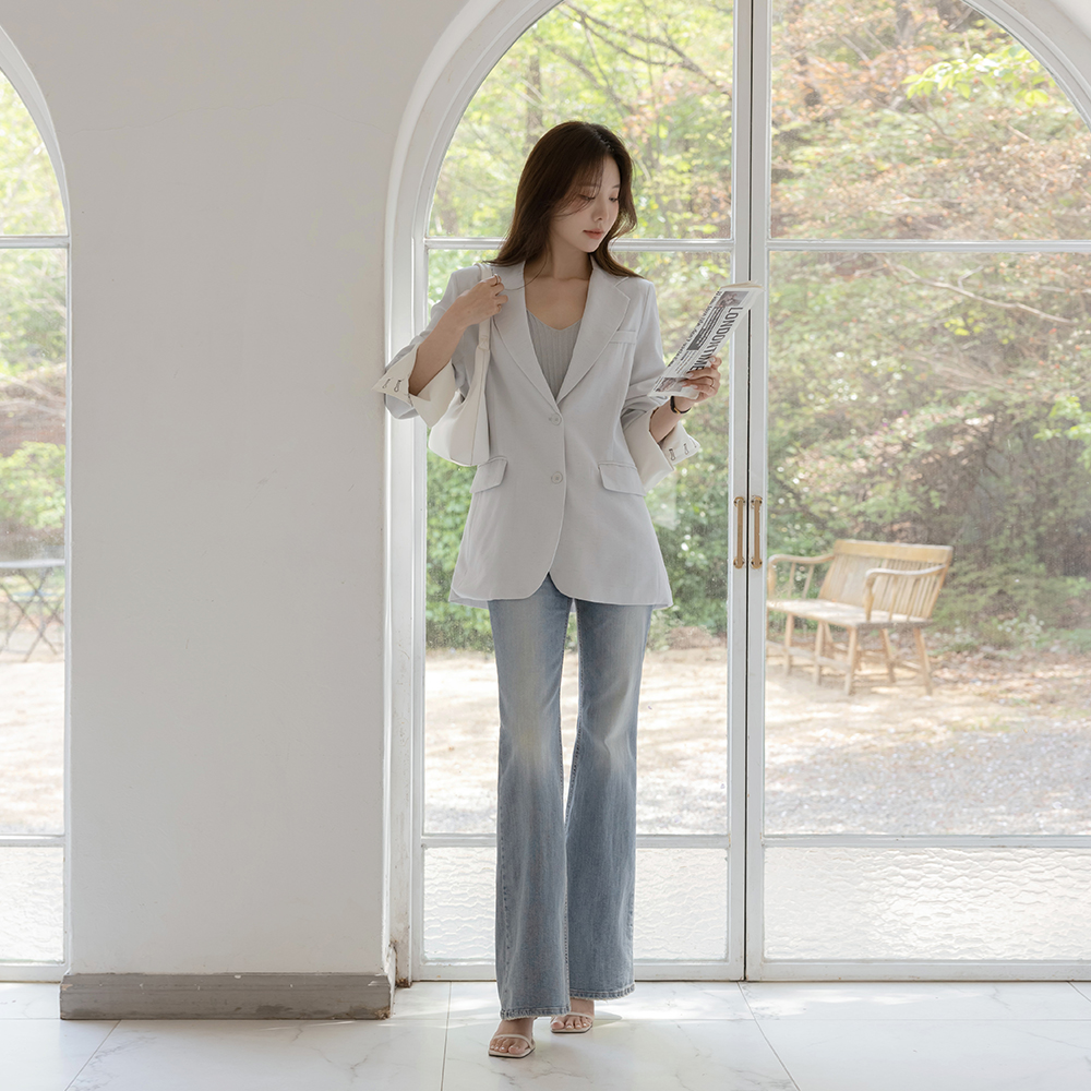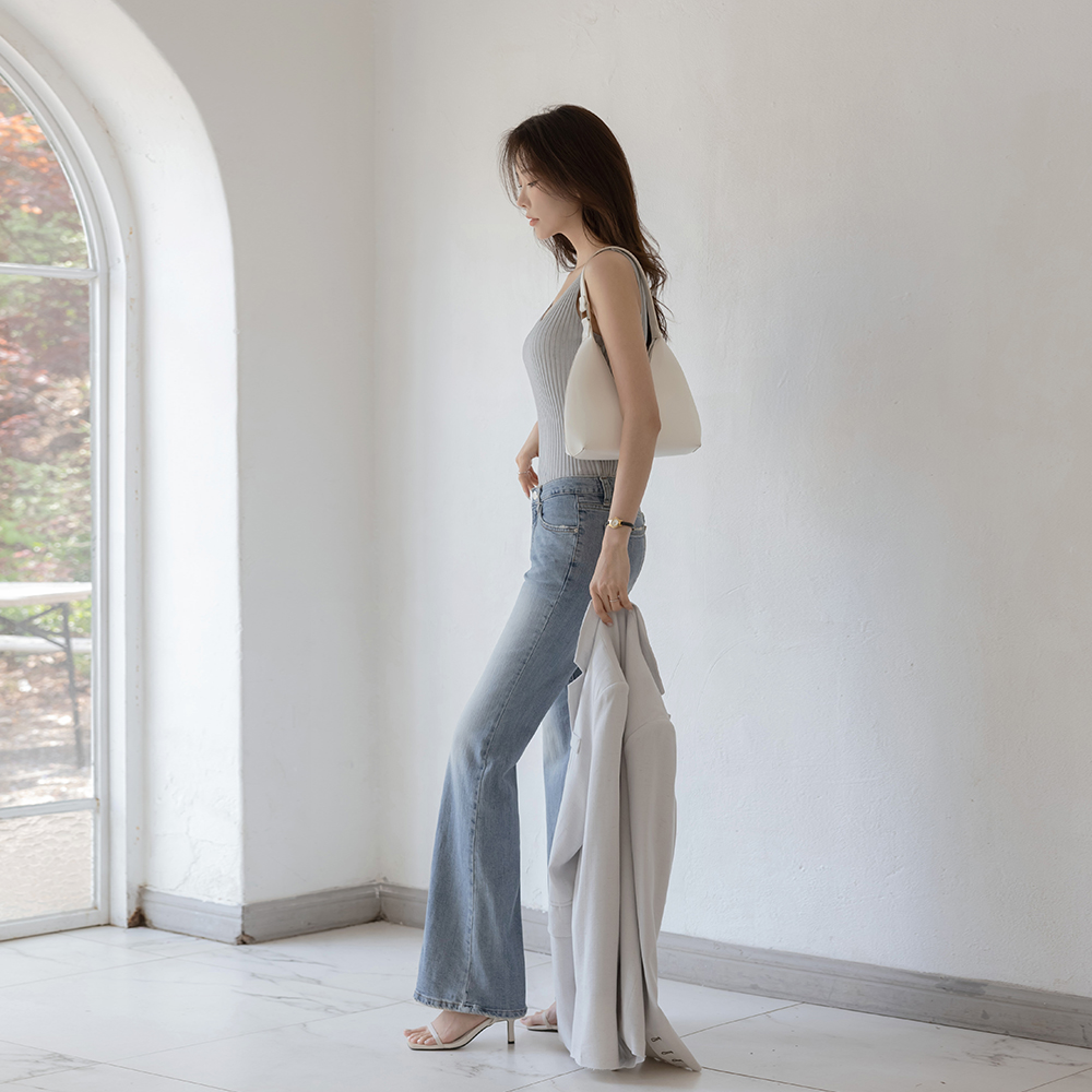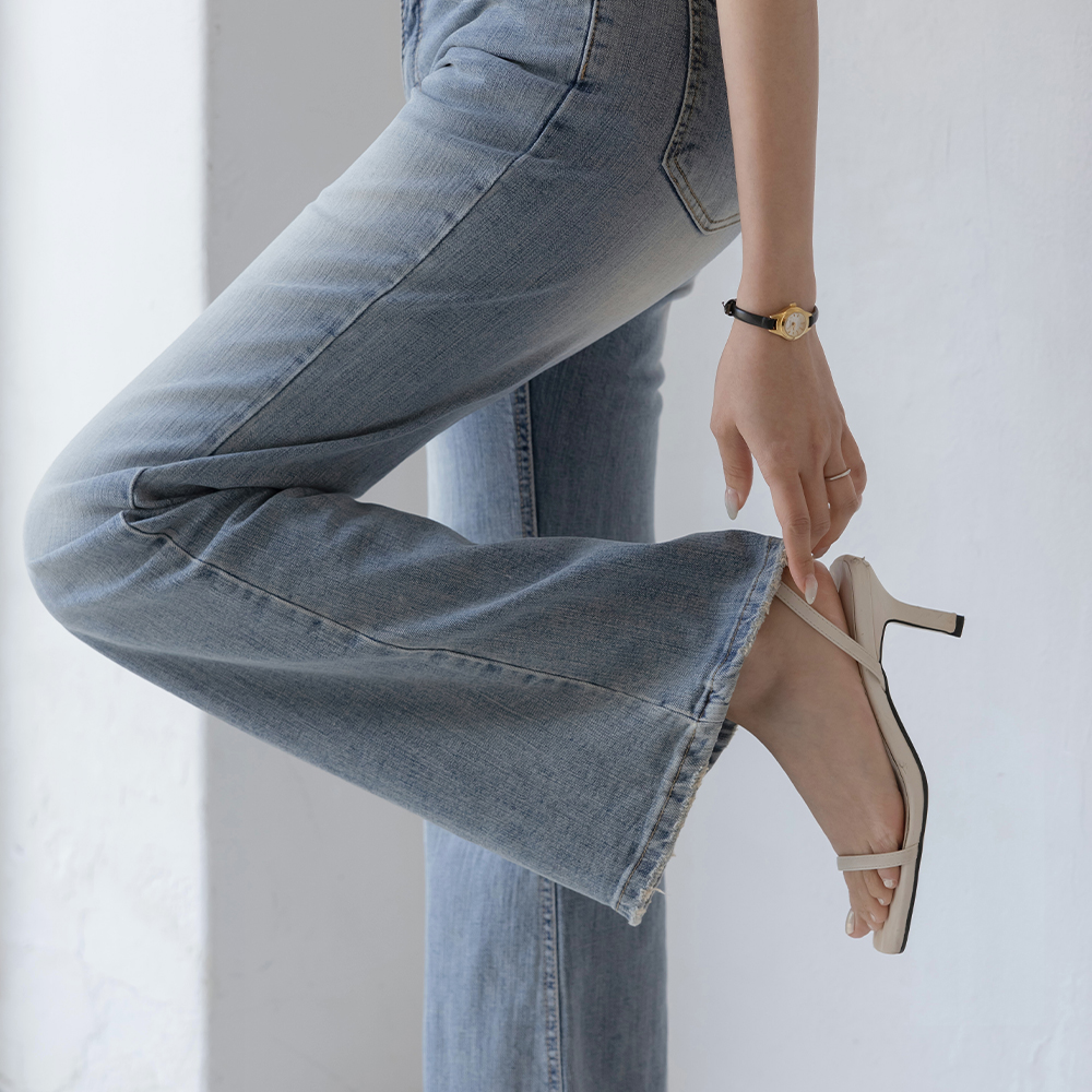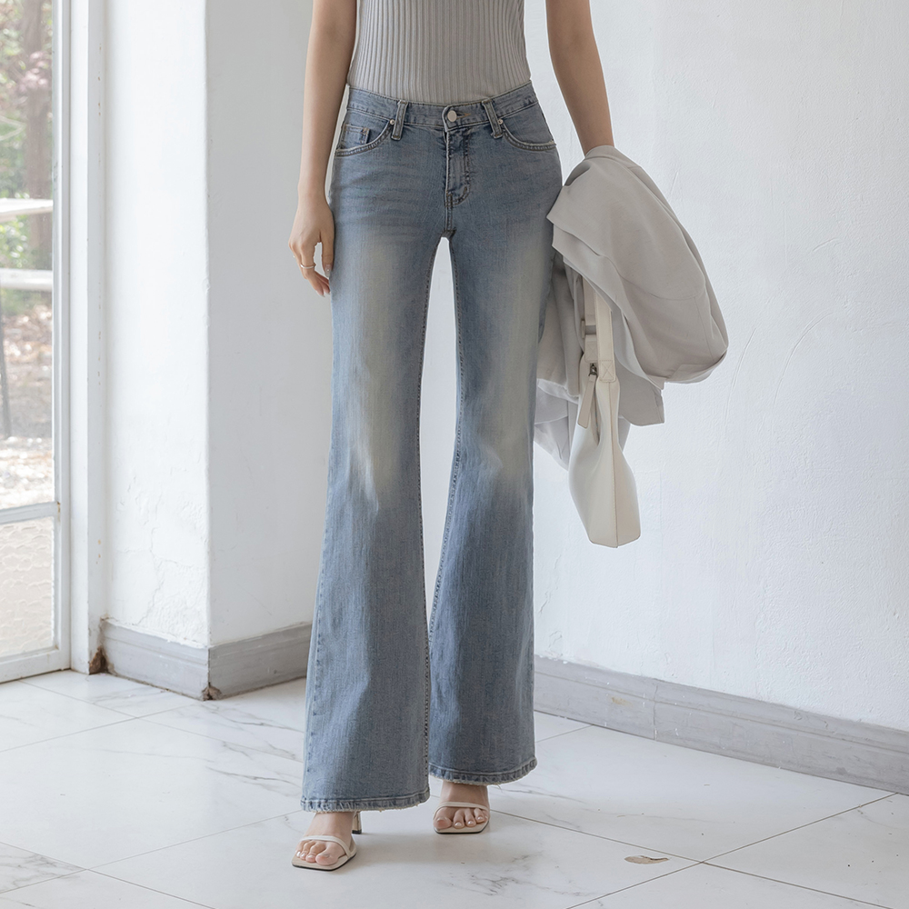 裾上 カッティング ウォッシング ブーツカット 弾力 デニム パンツ