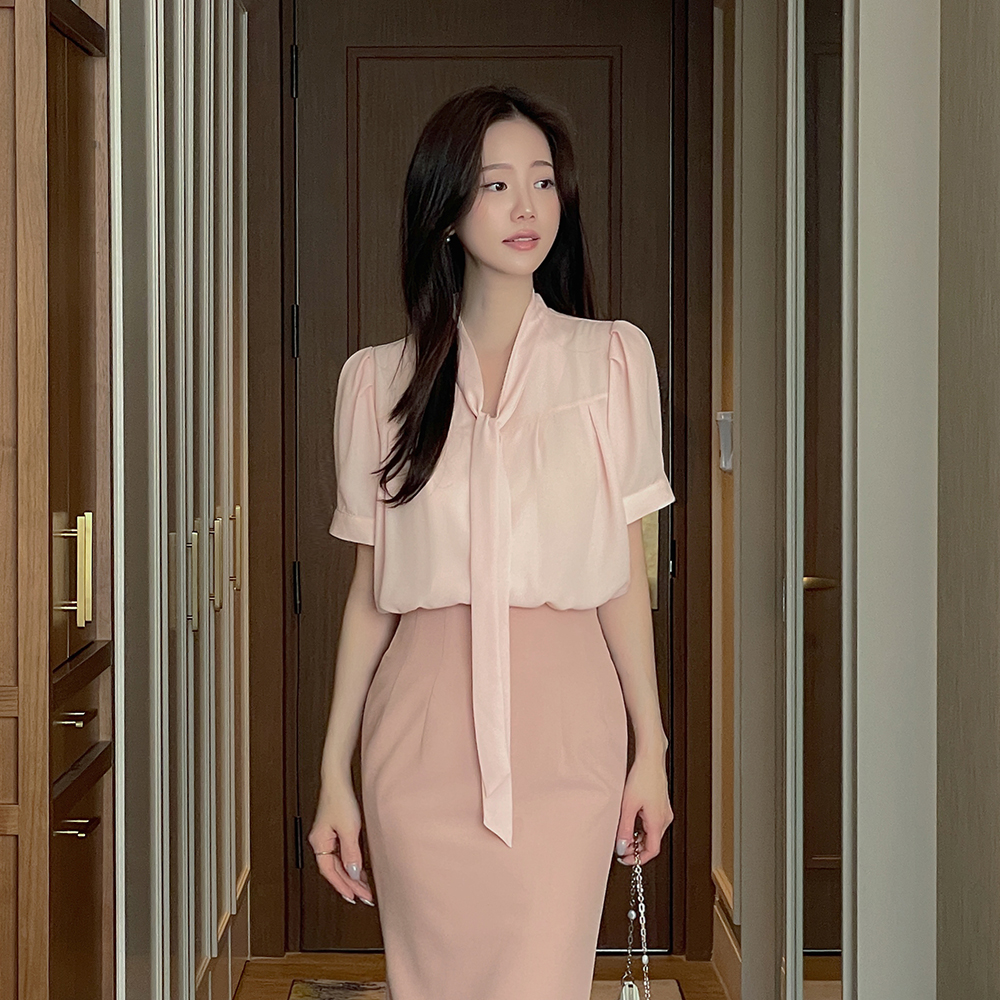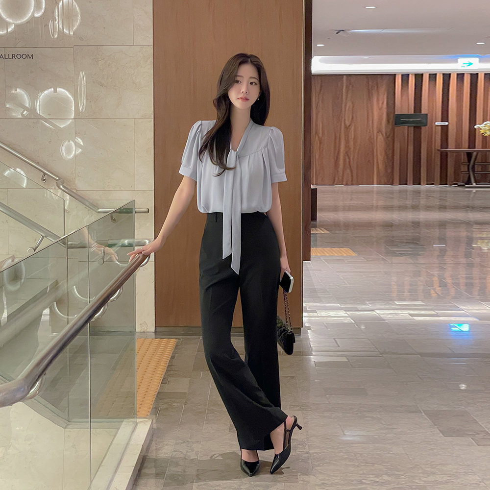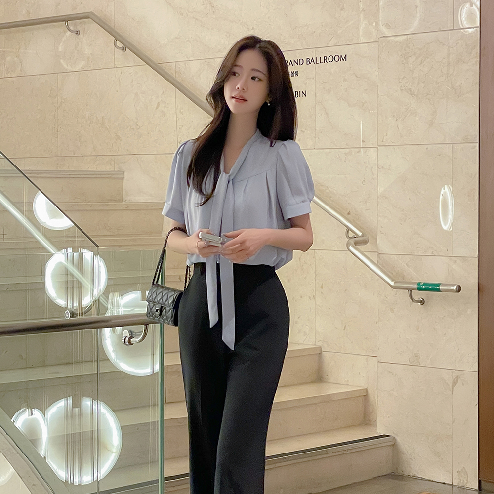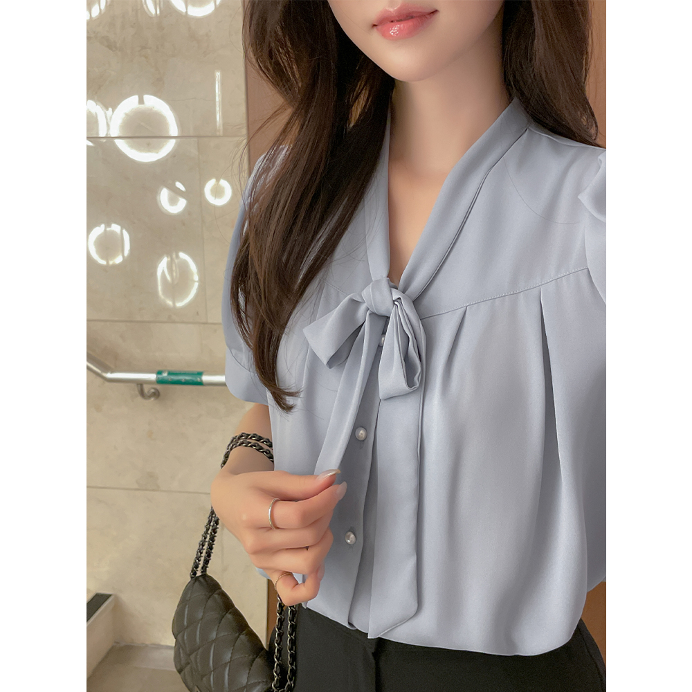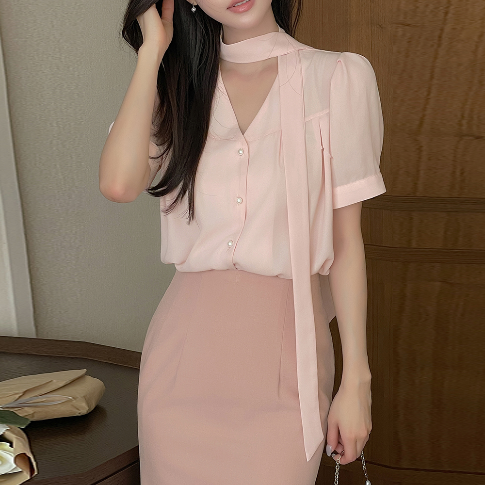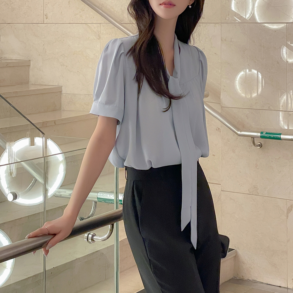 Olivia V タイネック 半そで ブラウス