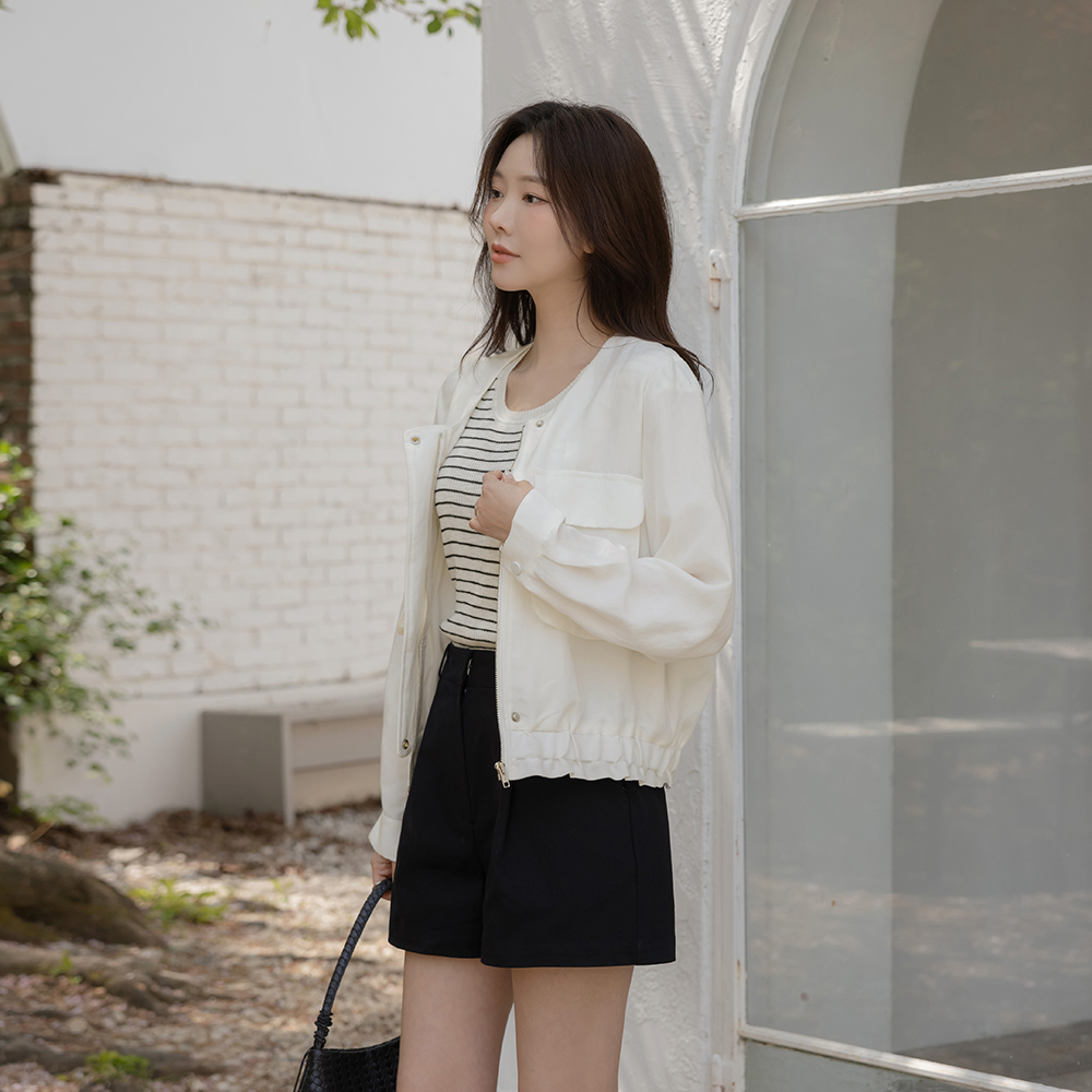 シンプル 백포켓 ピンタック コットン ハーフ パンツ