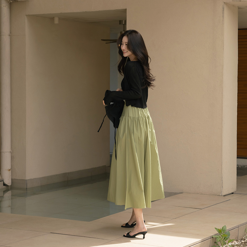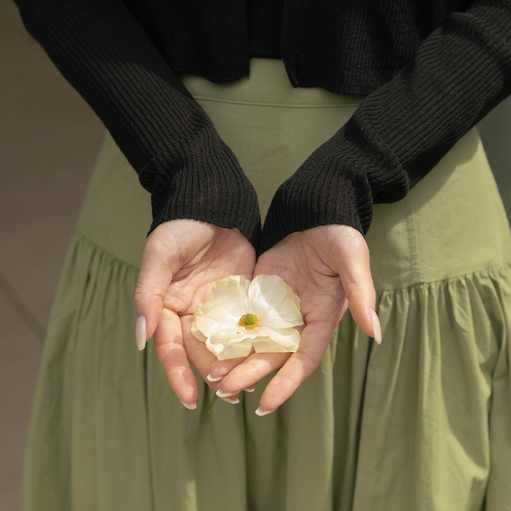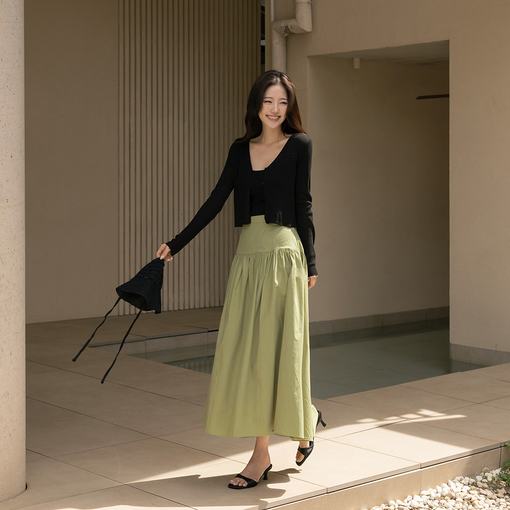 サマー カラー ツーボタン リネン クロップド カーディガン